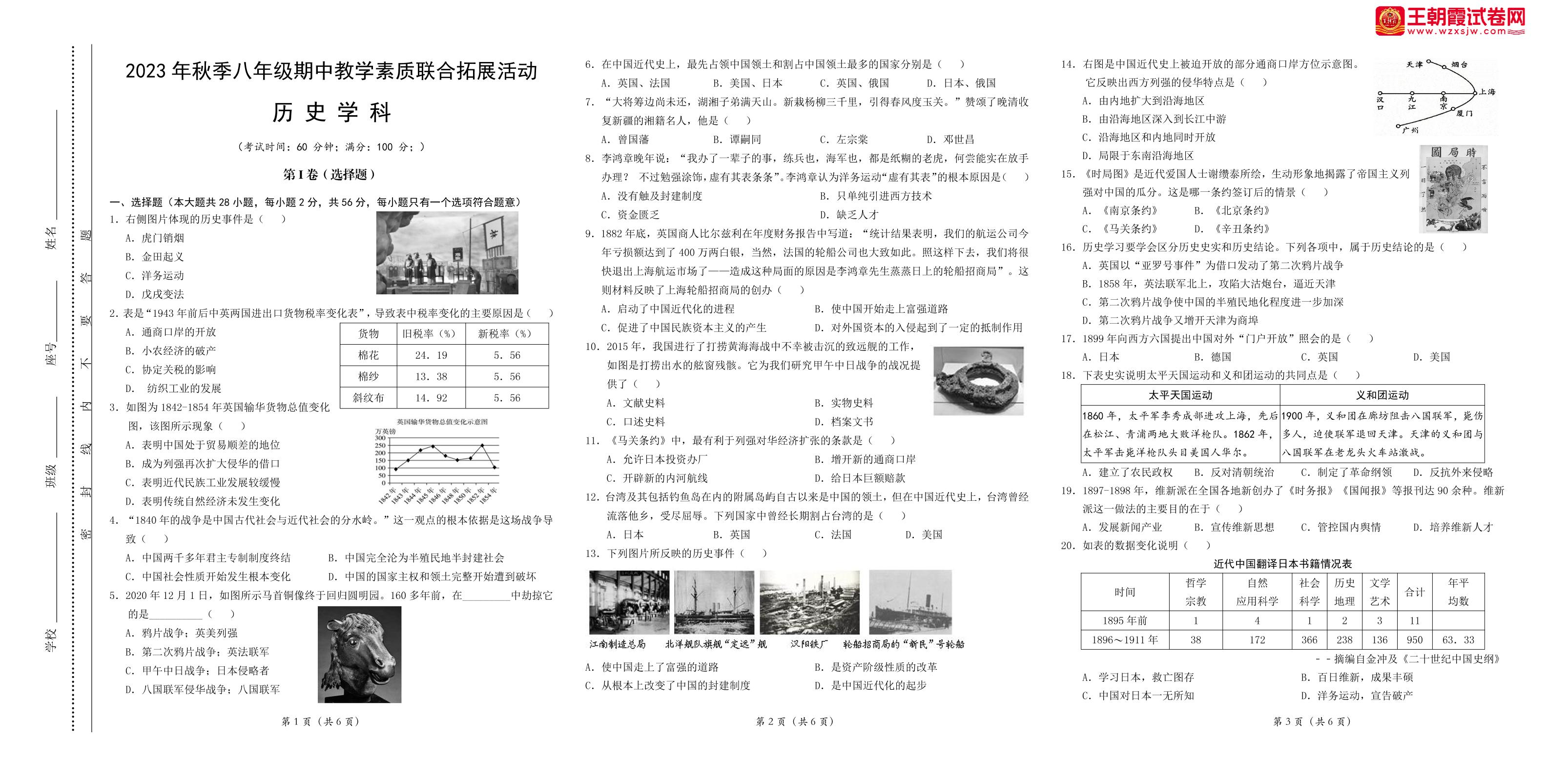 福建省泉州市泉港区2023-2024学年第一学期期中教学素质联合拓展活动八年级历史(人教版)