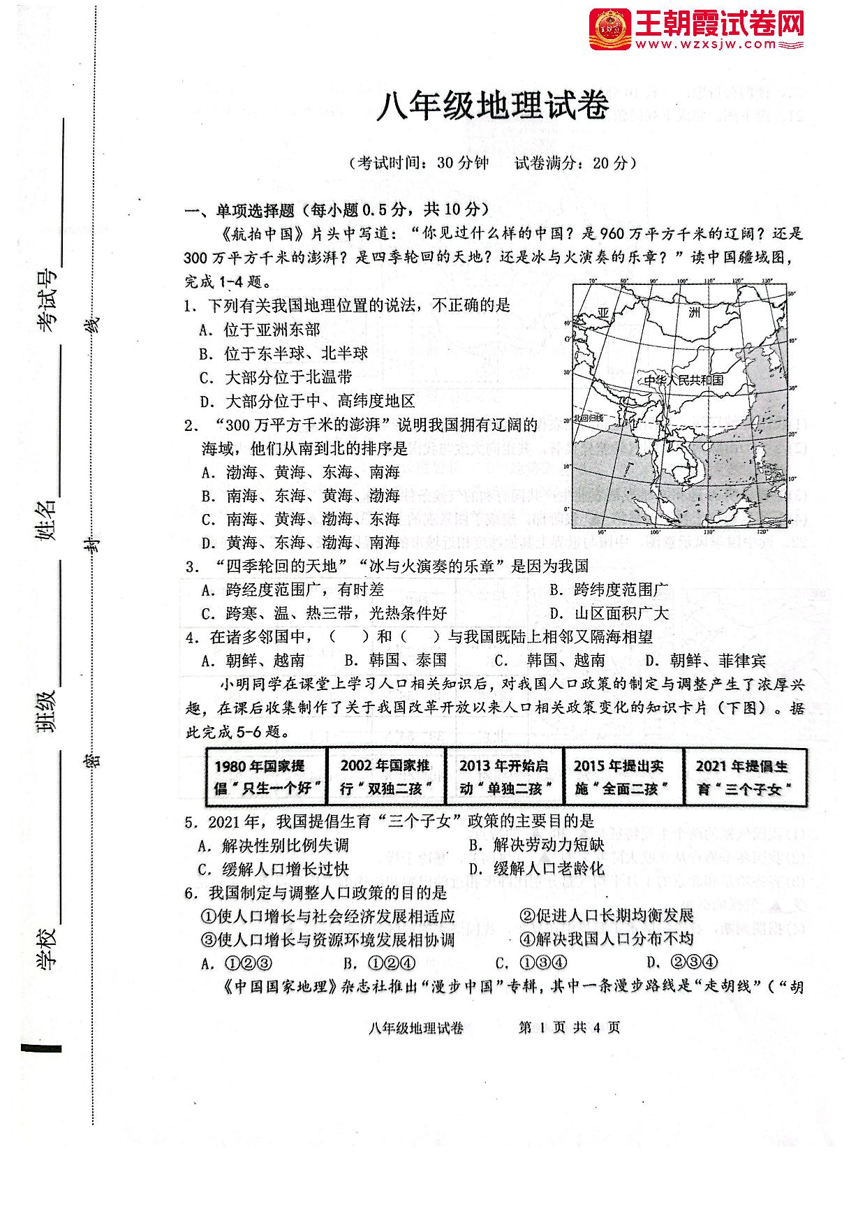 江苏省盐城市建湖县2023-2024学年上学期期中试题八年级地理(人教版)