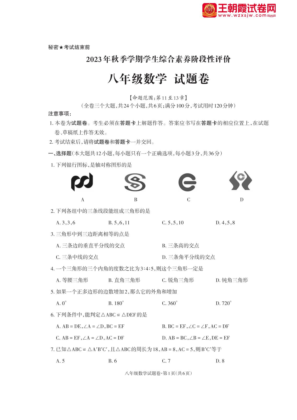 八年级数学人教版上册期中卷