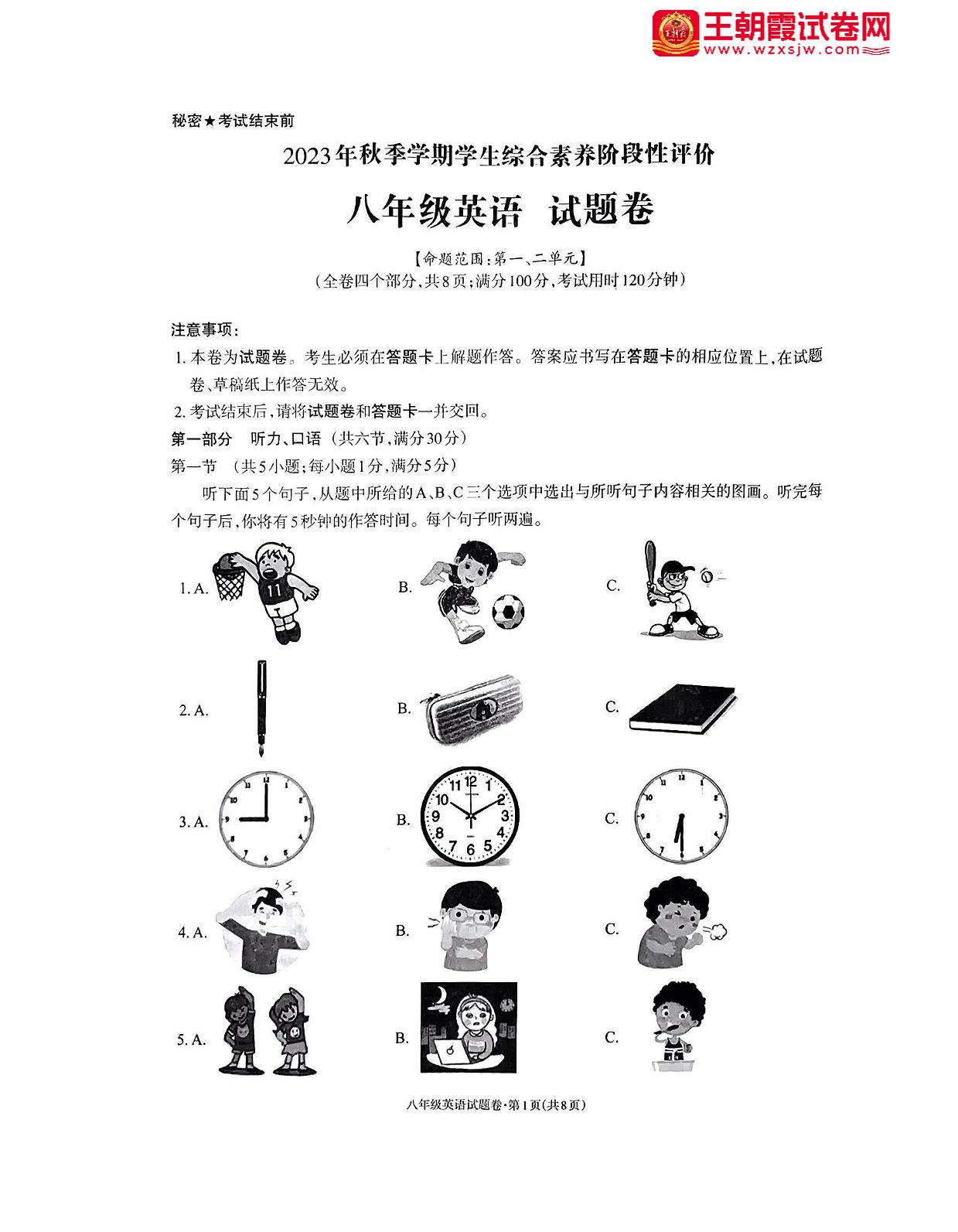 云南省昭通市永善县2023-2024学年上学期学生综合素质阶段性评价期中试题卷八年级英语(新课标版)