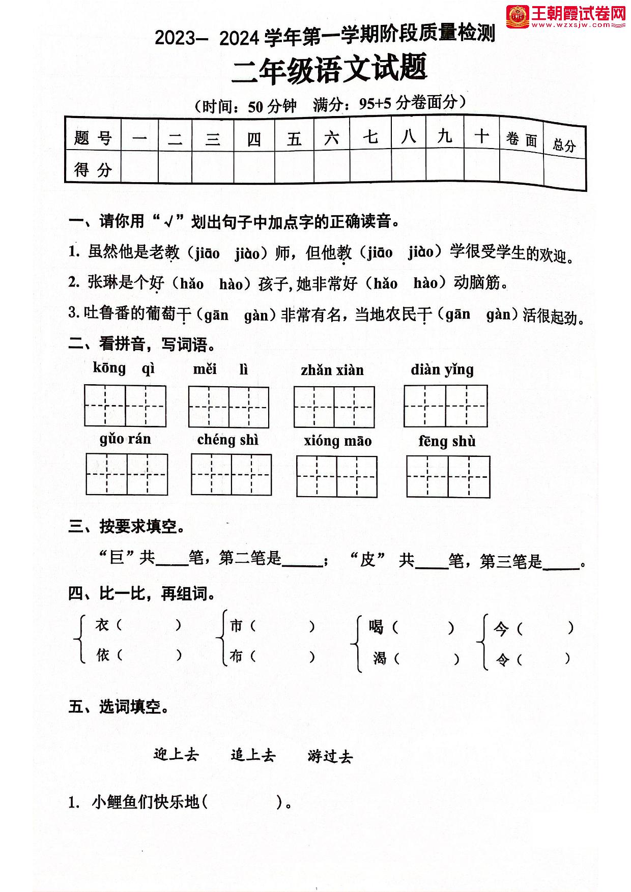 二年级语文人教版上册期中卷