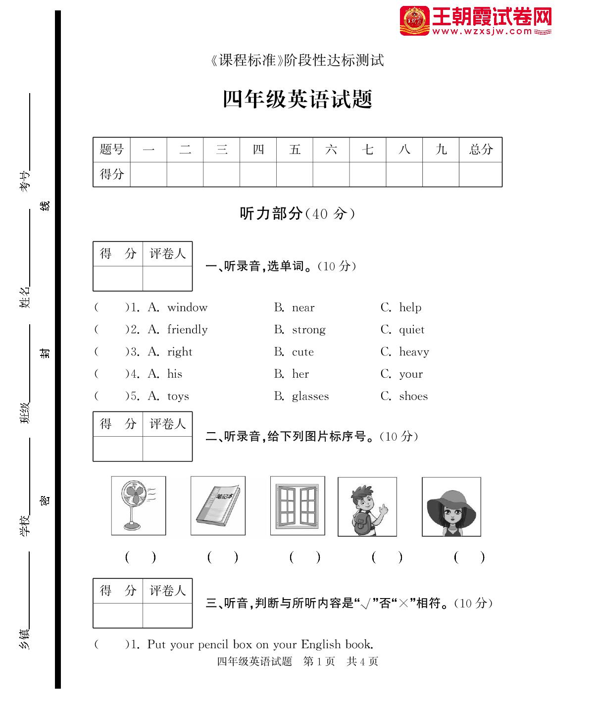 山东省济宁市泗水县2023-2024学年第一学期期中阶段性达标测试四年级英语(人教PEP版)