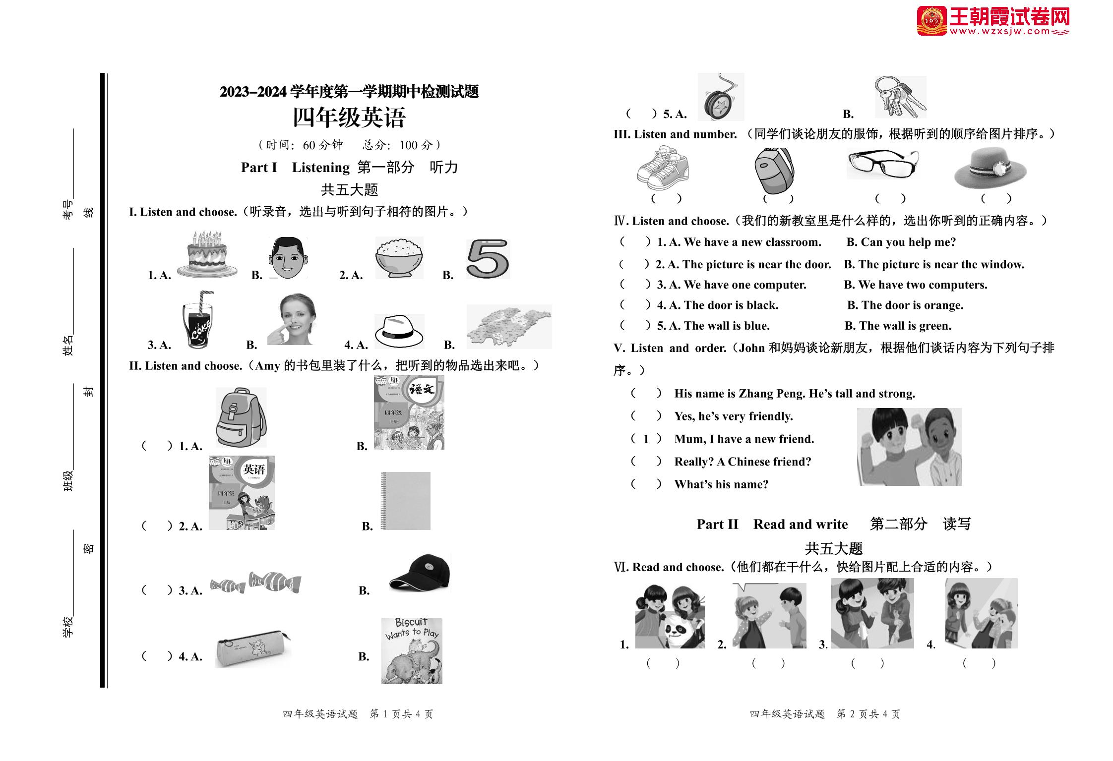 山东省枣庄市山亭区2023-2024学年度第一学期期中检测试题四年级英语(人教PEP版)【无听力音频】