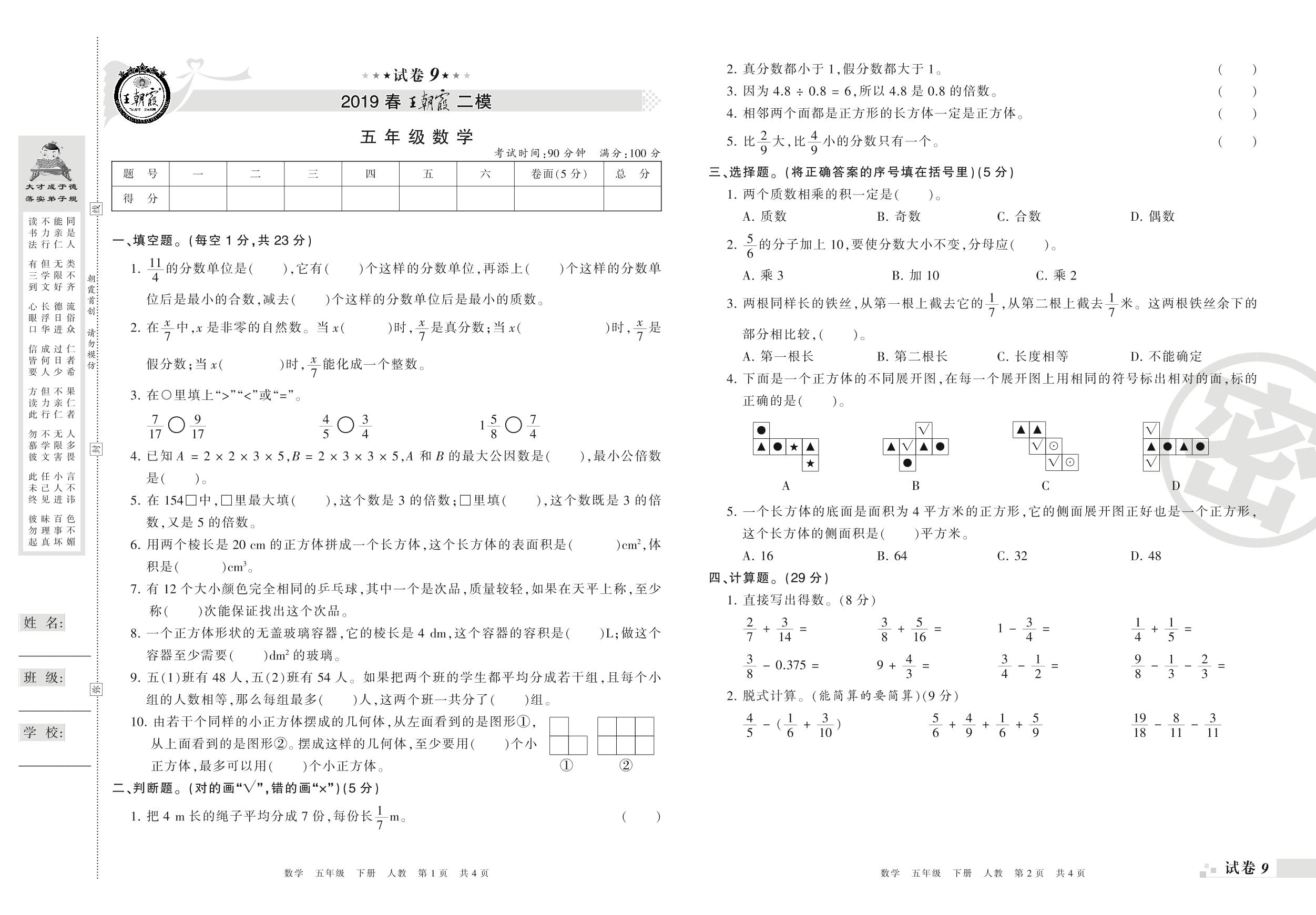 王朝霞期末模拟卷五年级下册数学(人教版)_R210804172205【9】