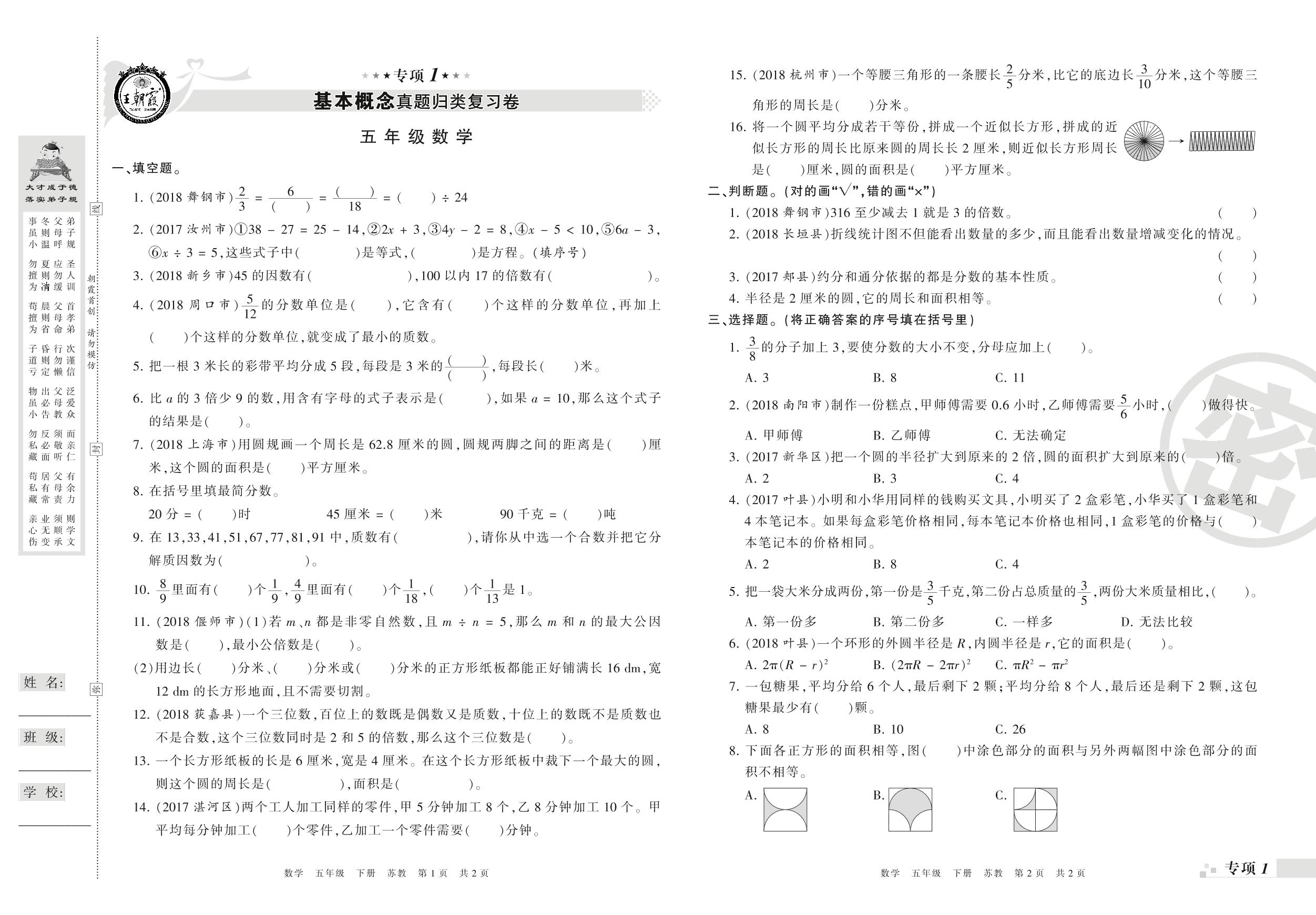 王朝霞期末专项卷——基本概念、计算真题归类复习卷五年级下册数学(苏教版)_R210804172218【0】