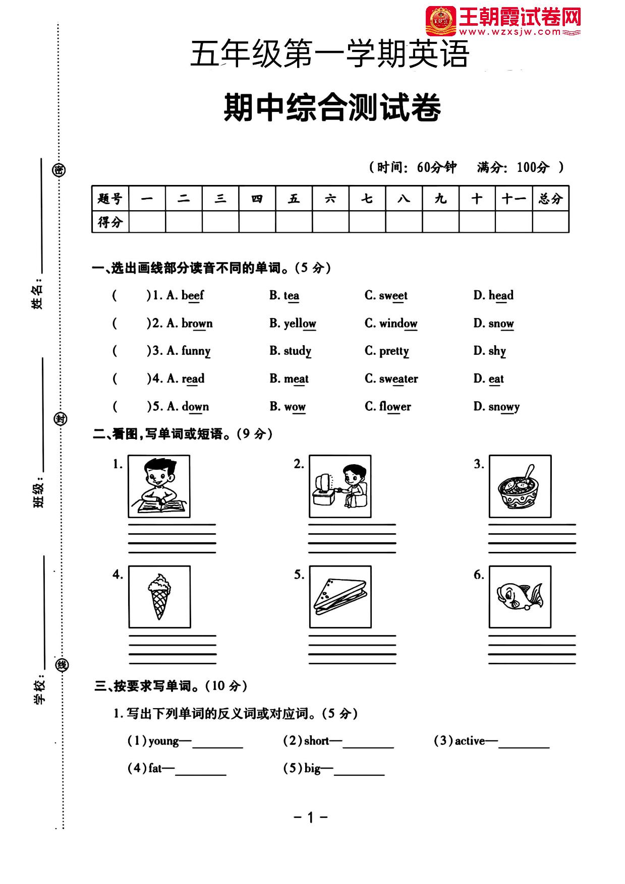 山东省德州市宁津县2023-2024学年第一学期期中综合测试卷五年级英语(外研版)