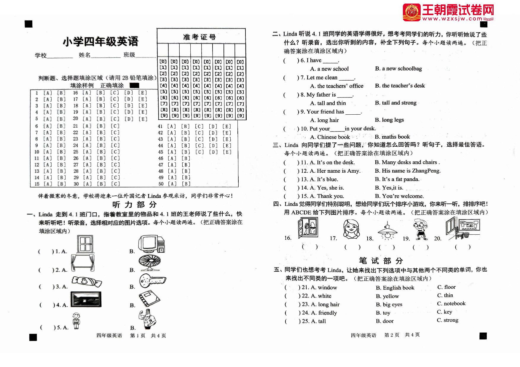 山东省菏泽市牡丹区2023-2024学年第一学期期中检测卷四年级英语(人教PEP版)【无听力音频】