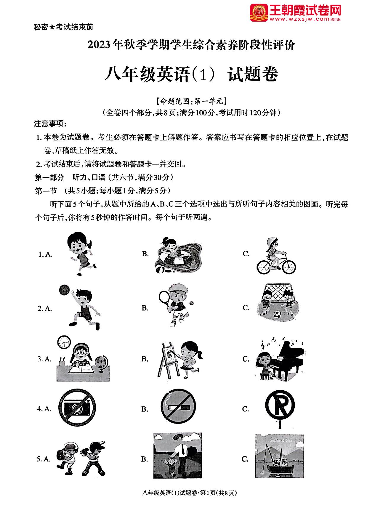 云南省昭通市昭阳区2023-2024学年上学期学生综合素养阶段性评价10月月考试题卷八年级英语(新课标版)【无听力音频】