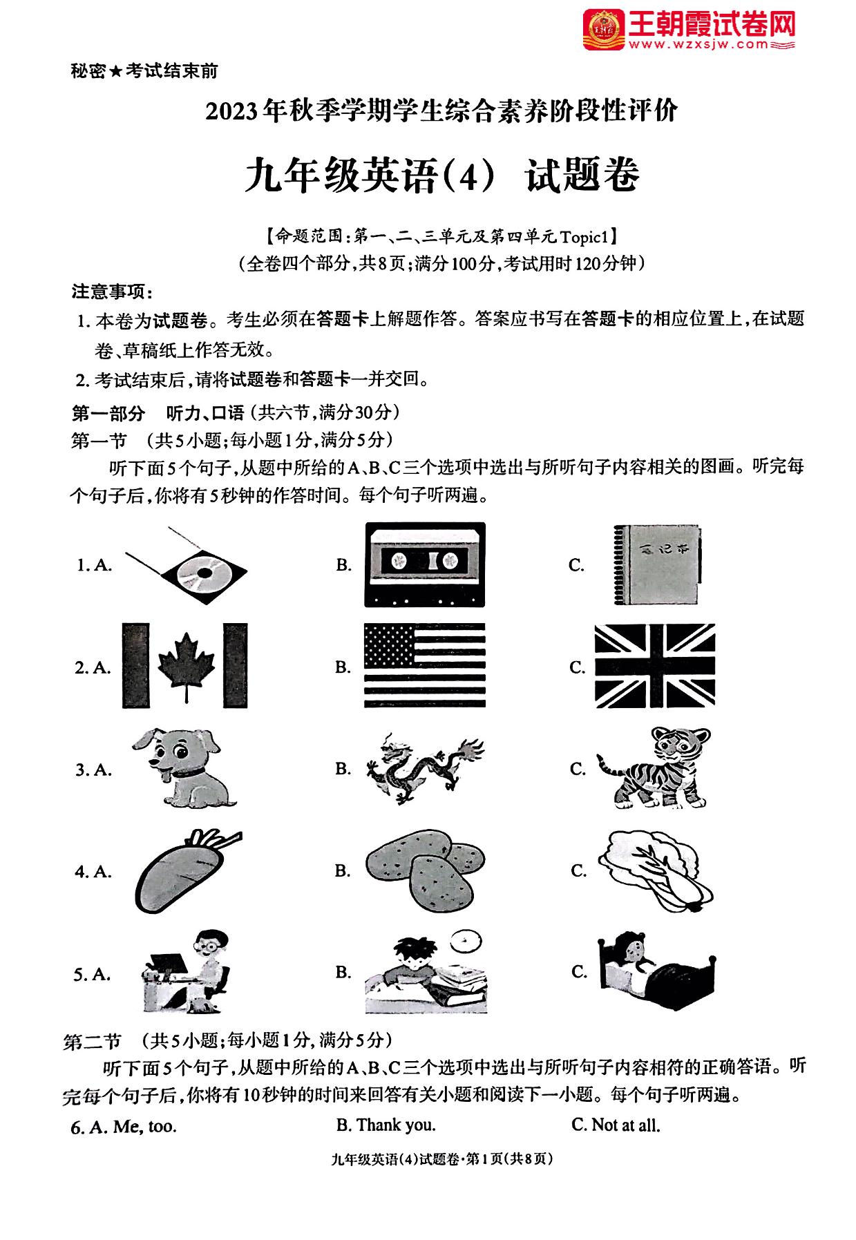 云南省昭通市昭阳区2023-2024学年上学期学生综合素养阶段性评价12月月考试题卷九年级英语(新课标版)【无听力音频】