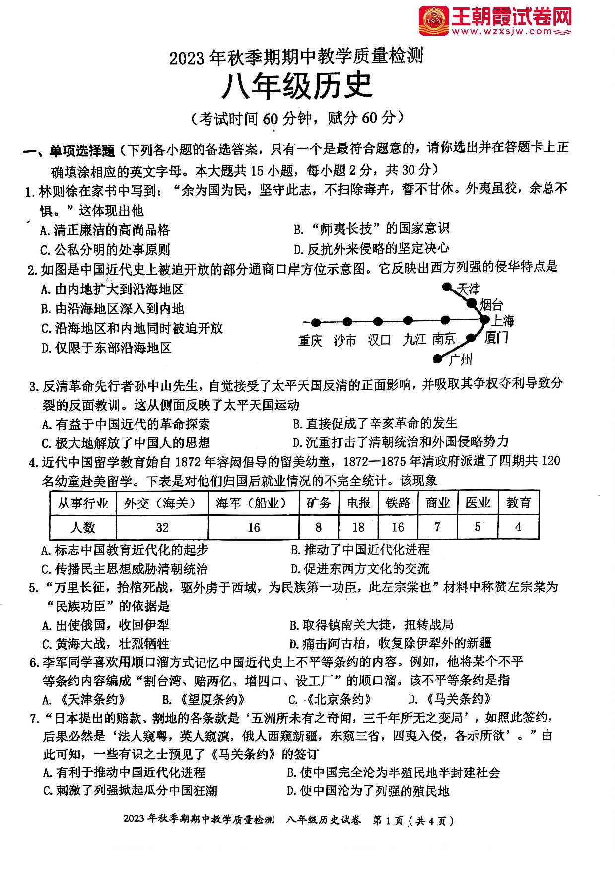 广西贵港市桂平市2023-2024学年上学期期中教学质量检测八年级历史(人教版)