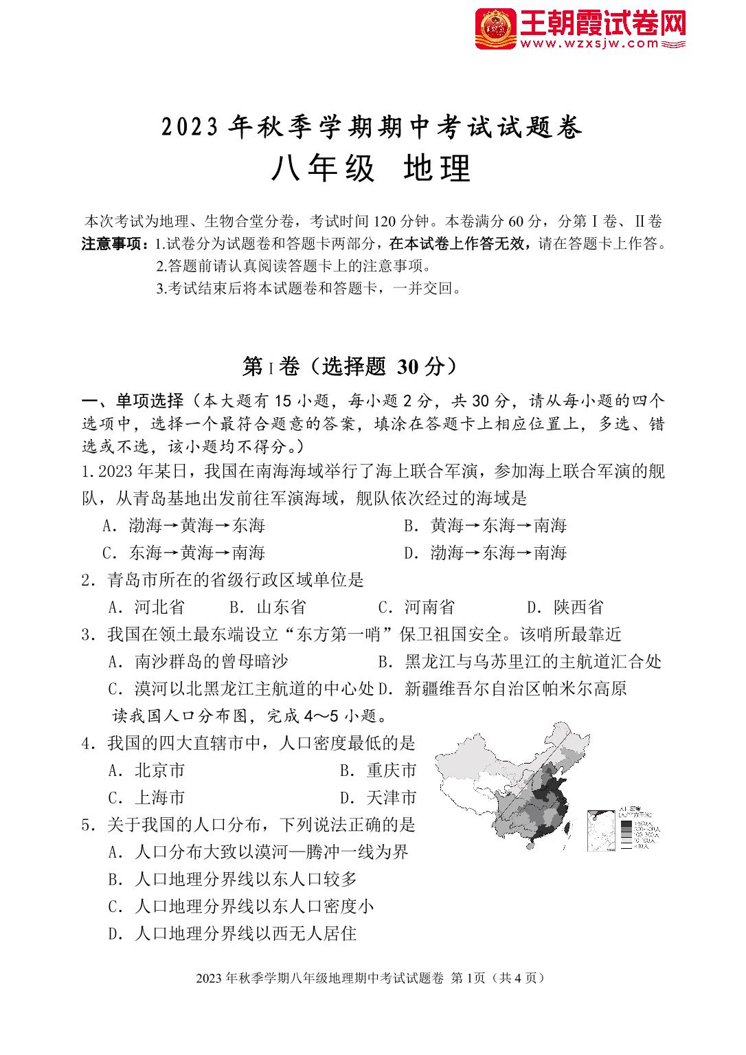 广西河池市宜州区2023-2024学年上学期期中考试试题八年级地理(人教版)
