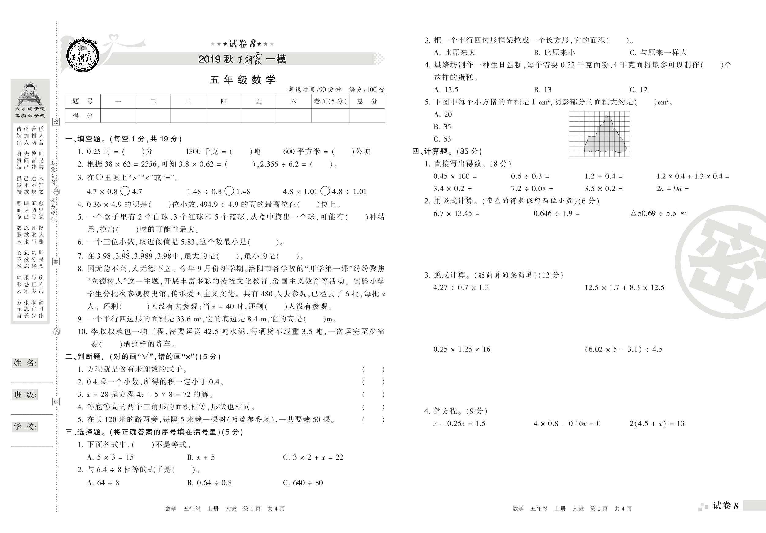 王朝霞期末模拟卷五年级上册数学(人教版)_R210804172324【8】