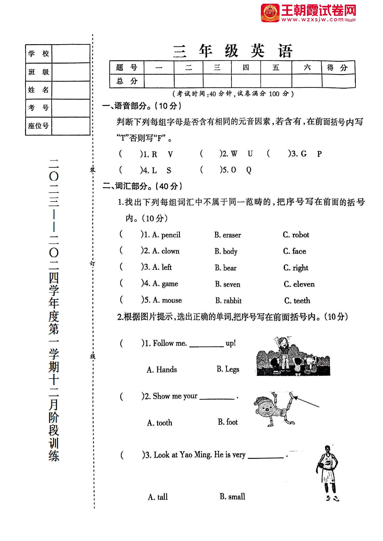 三年级英语辽师大版上册月考卷