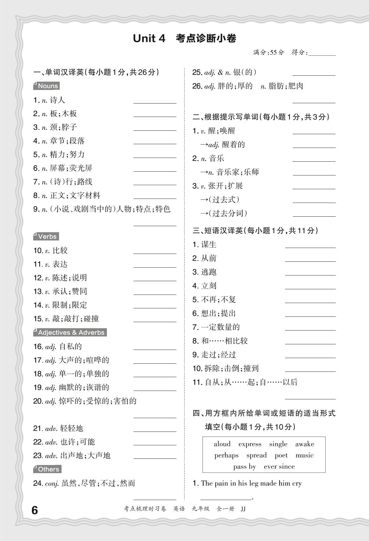 2024-2025学年九年级英语冀教版 Unit 4 考点诊断小卷