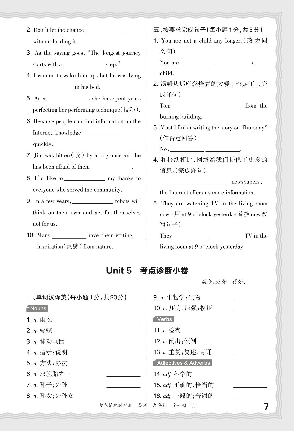 2024-2025学年九年级英语冀教版 Unit 5 考点诊断小卷