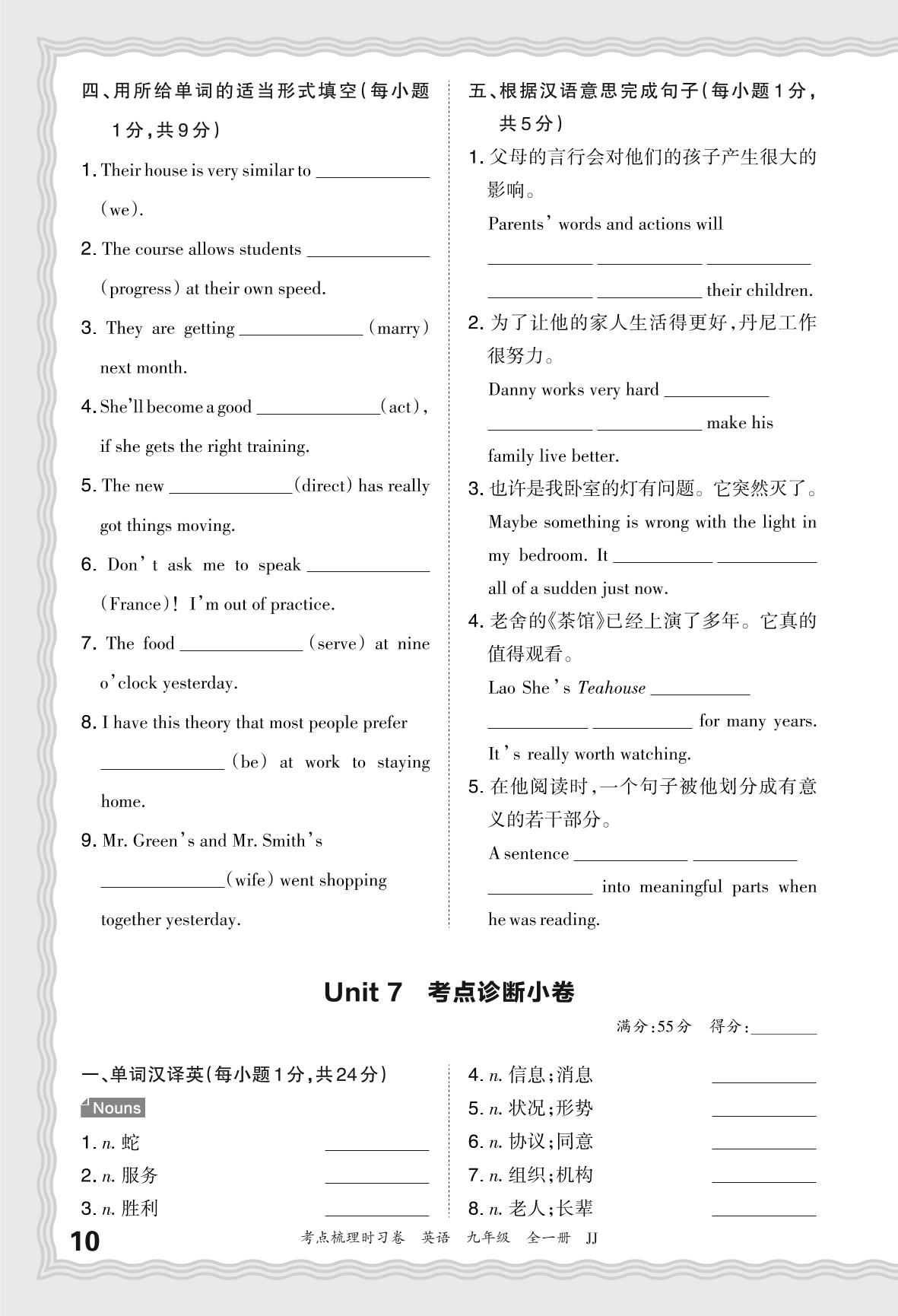 2024-2025学年九年级英语冀教版 Unit 7 考点诊断小卷