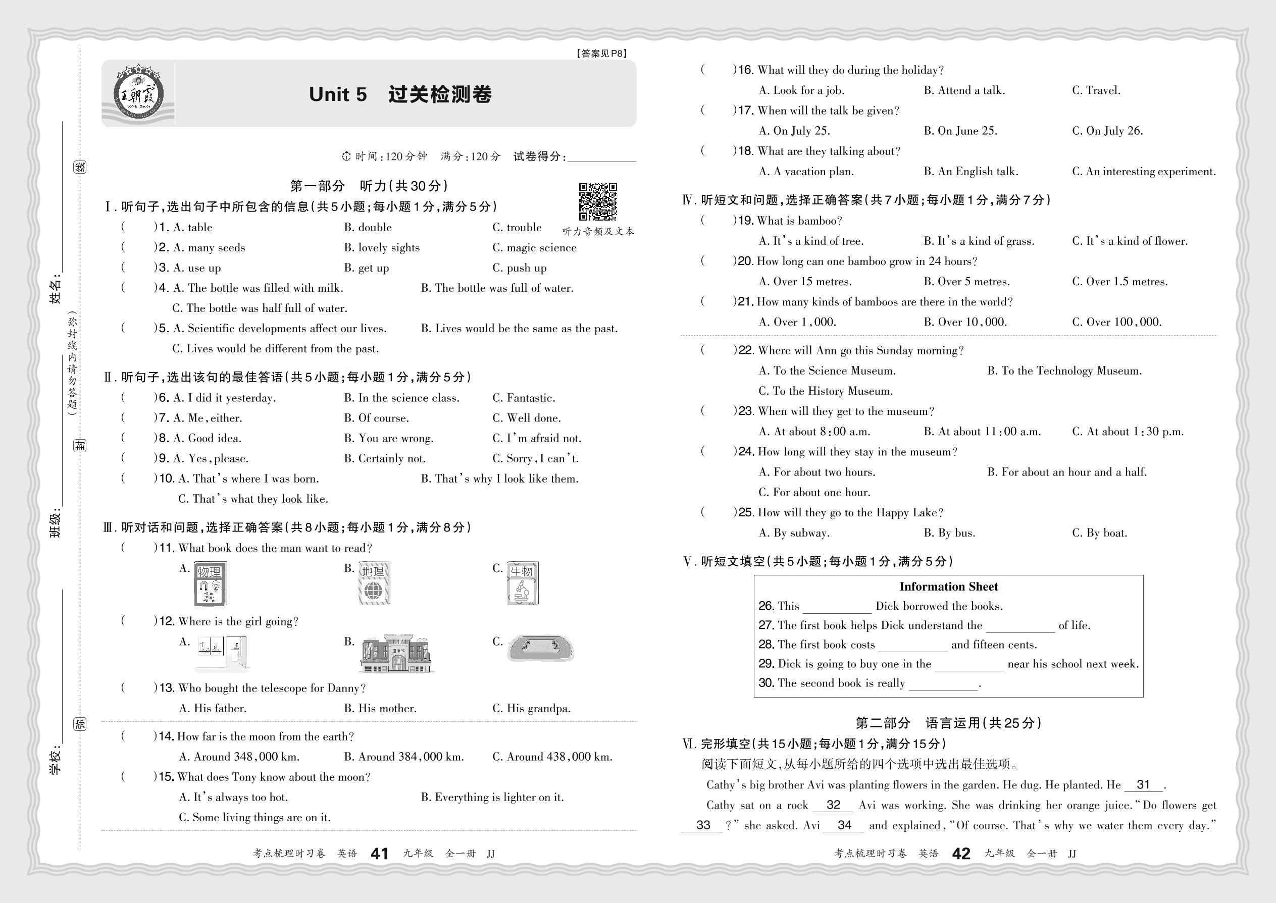 2024-2025学年九年级英语冀教版 Unit 5 过关检测卷