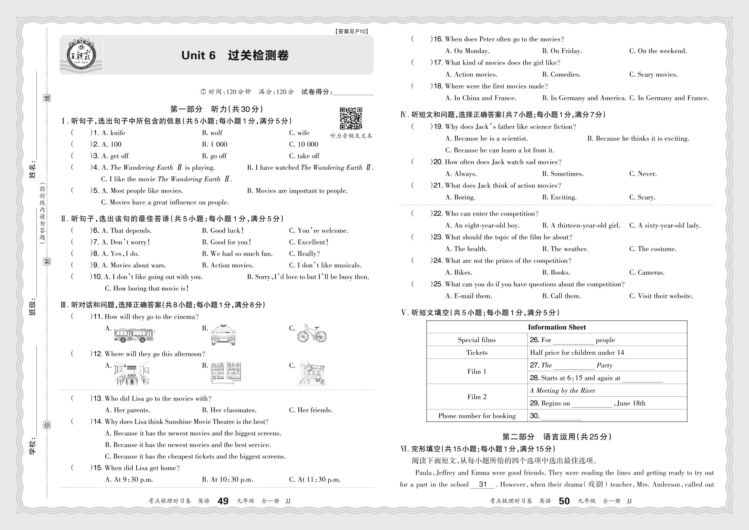 2024-2025学年九年级英语冀教版 Unit 6 过关检测卷