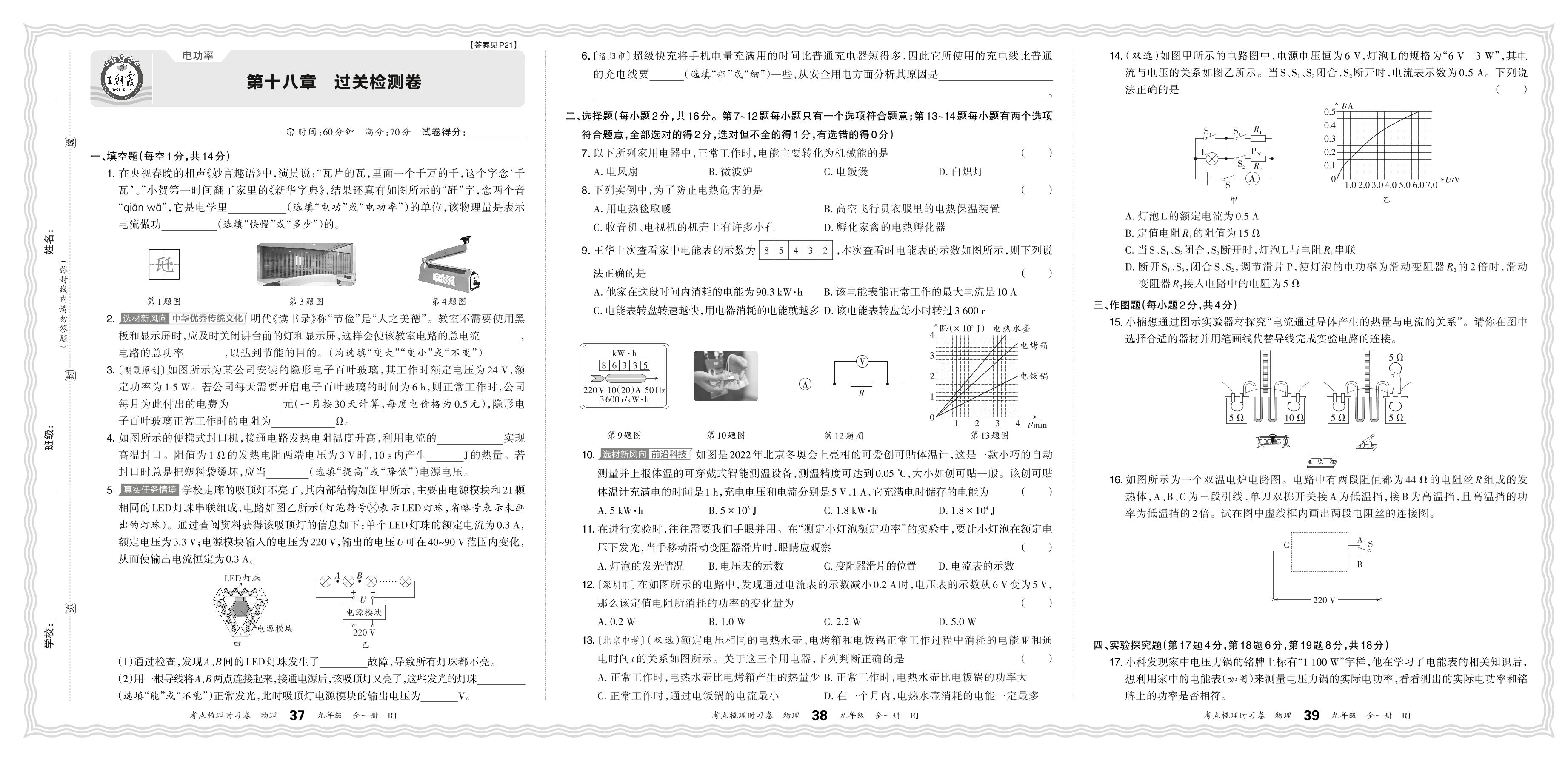 2024-2025学年九年级物理人教版 第十八章 过关检测卷