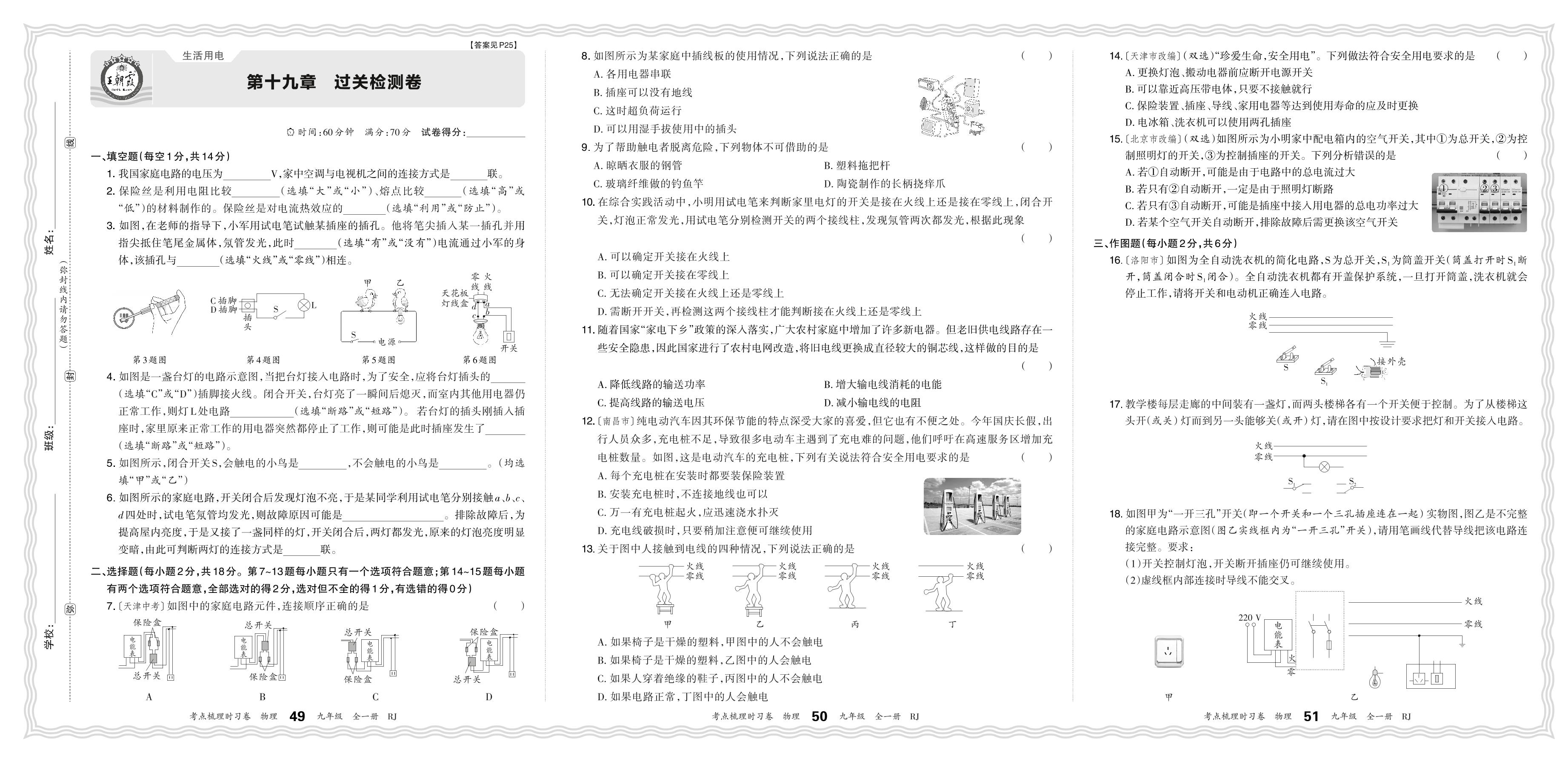 2024-2025学年九年级物理人教版 第十九章 过关检测卷