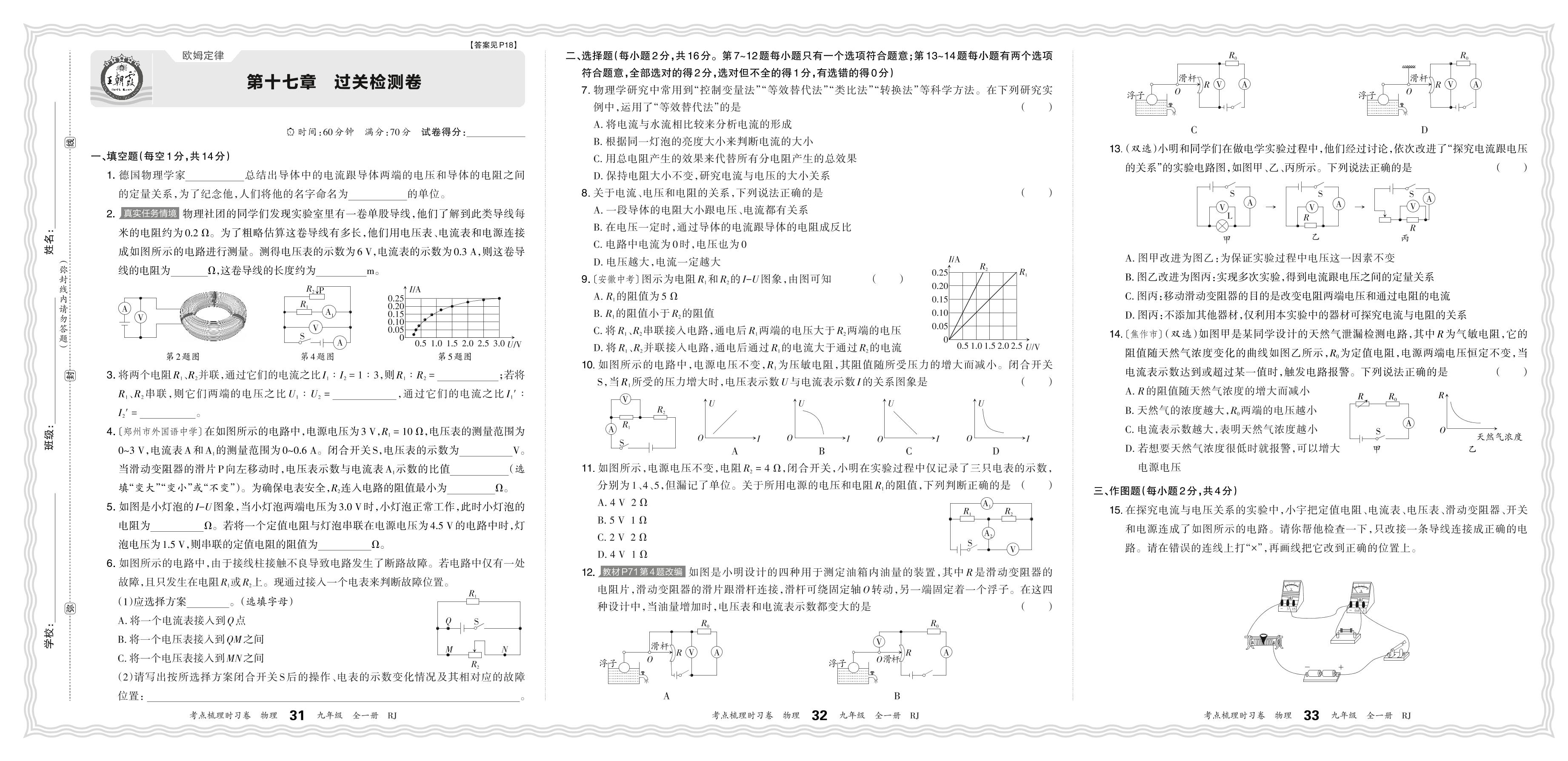 2024-2025学年九年级物理人教版 第十七章 过关检测卷