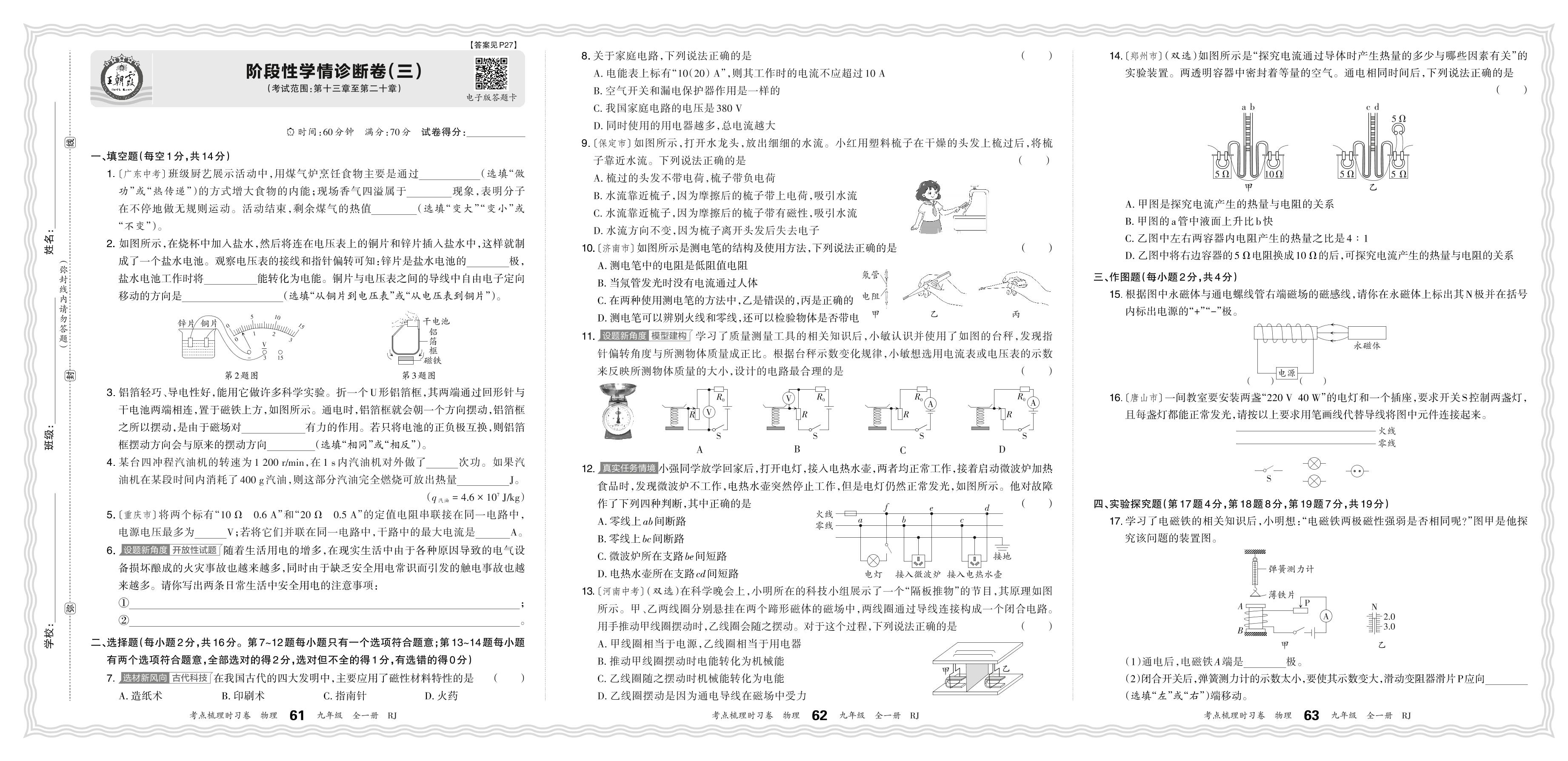 2024-2025学年九年级物理人教版 阶段性学情诊断卷(三)
