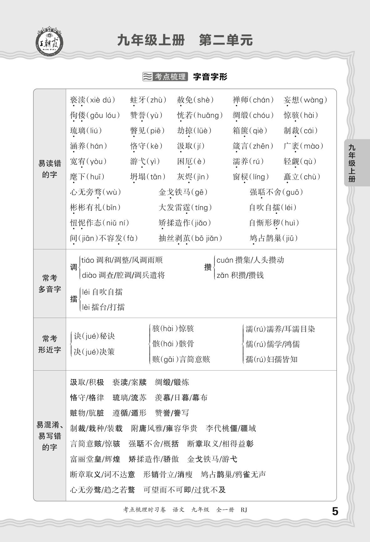 2024上册九年级语文人教版 考点梳理手册——九年级上册 第二单元