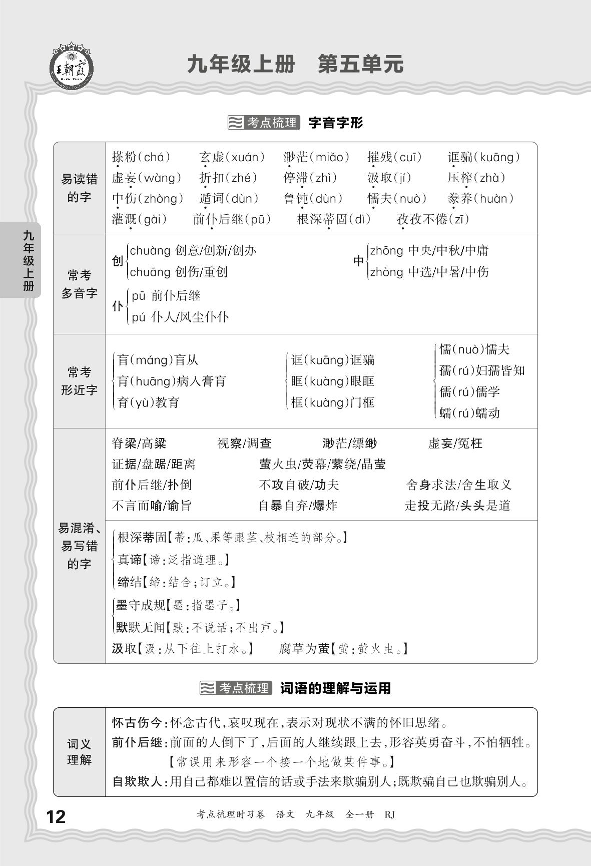 2024上册九年级语文人教版 考点梳理手册——九年级上册 第五单元