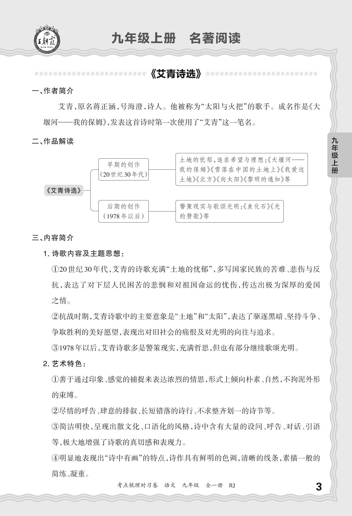 2024上册九年级语文人教版 考点梳理手册——九年级上册 名著阅读《艾青诗选》