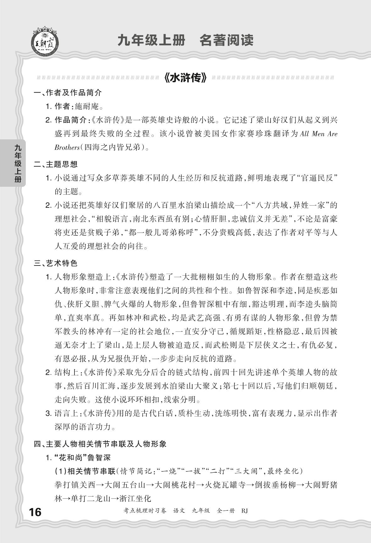 2024上册九年级语文人教版 考点梳理手册——九年级上册 名著阅读《水浒传》