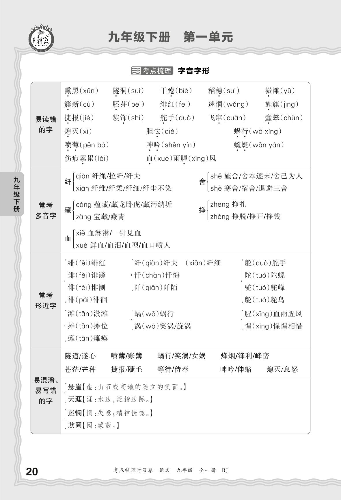 2025下册九年级语文人教版 考点梳理手册——九年级下册 第一单元