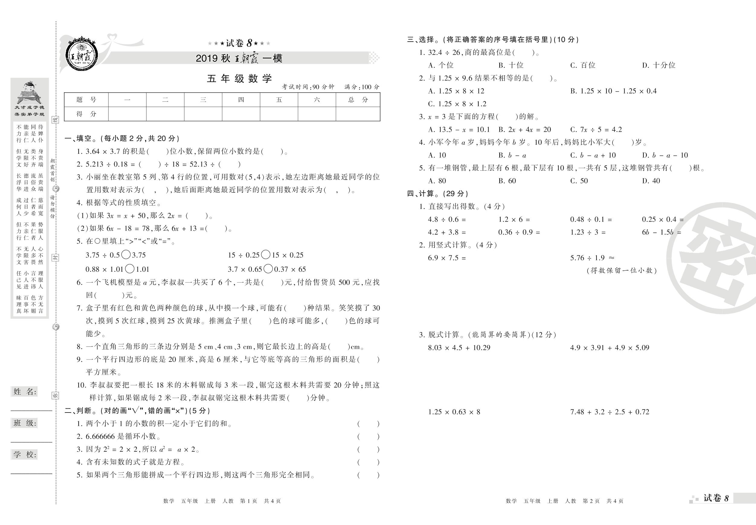 王朝霞期末模拟卷五年级上册数学(人教版)_R210804172402【8】