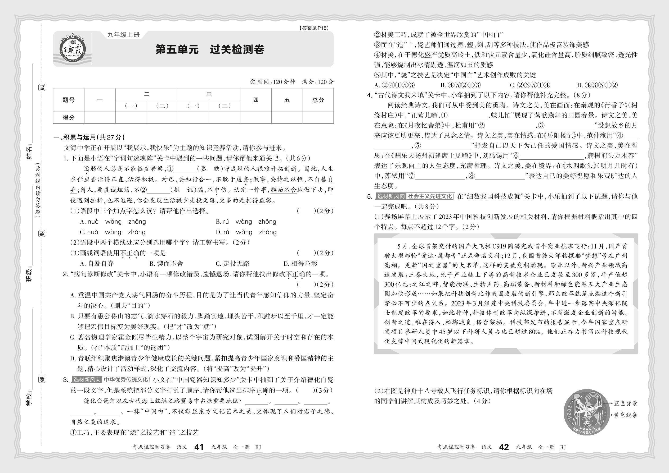 2024上册九年级语文人教版 第五单元 过关检测卷