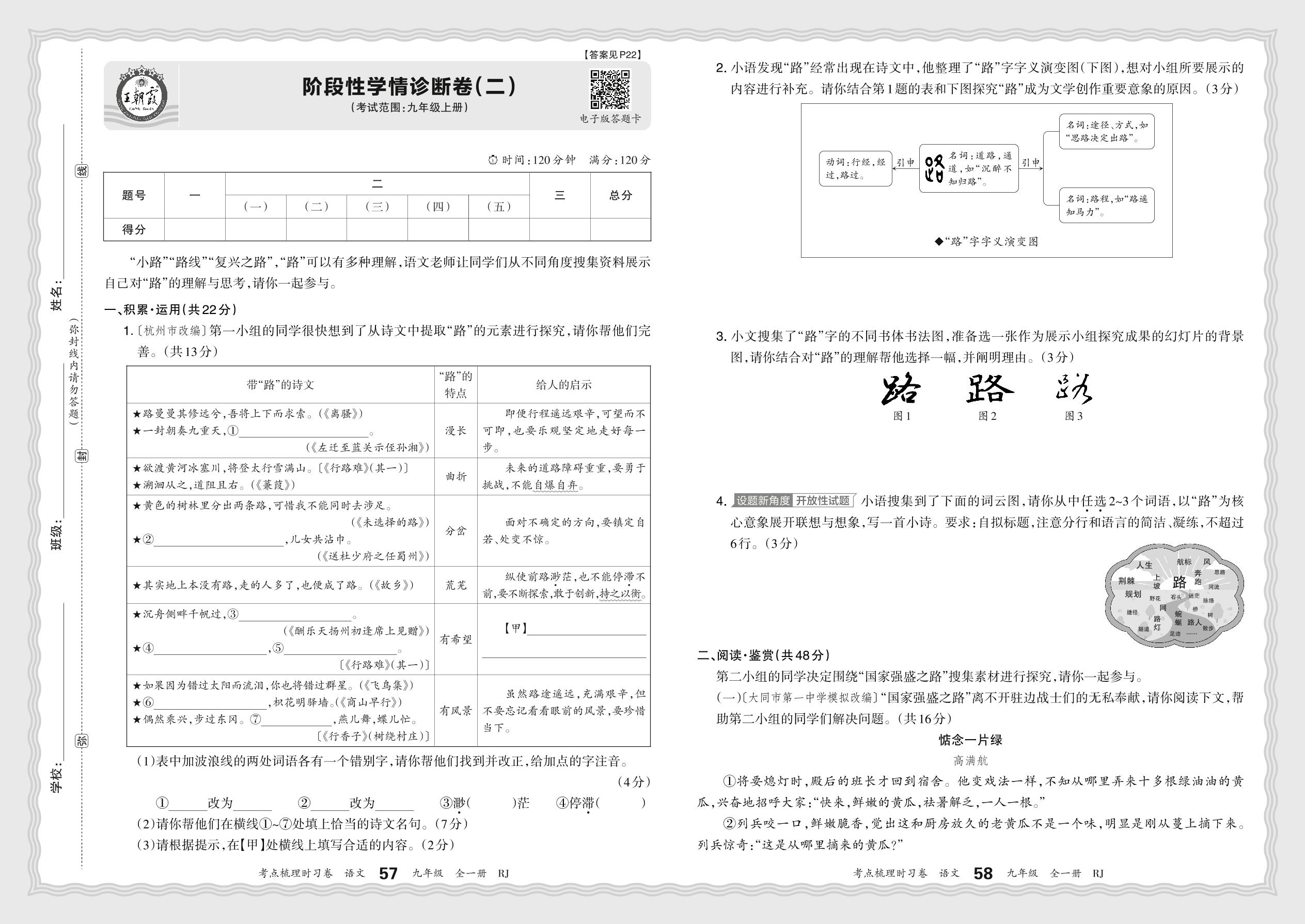 2024上册九年级语文人教版 阶段性学情诊断卷(二)