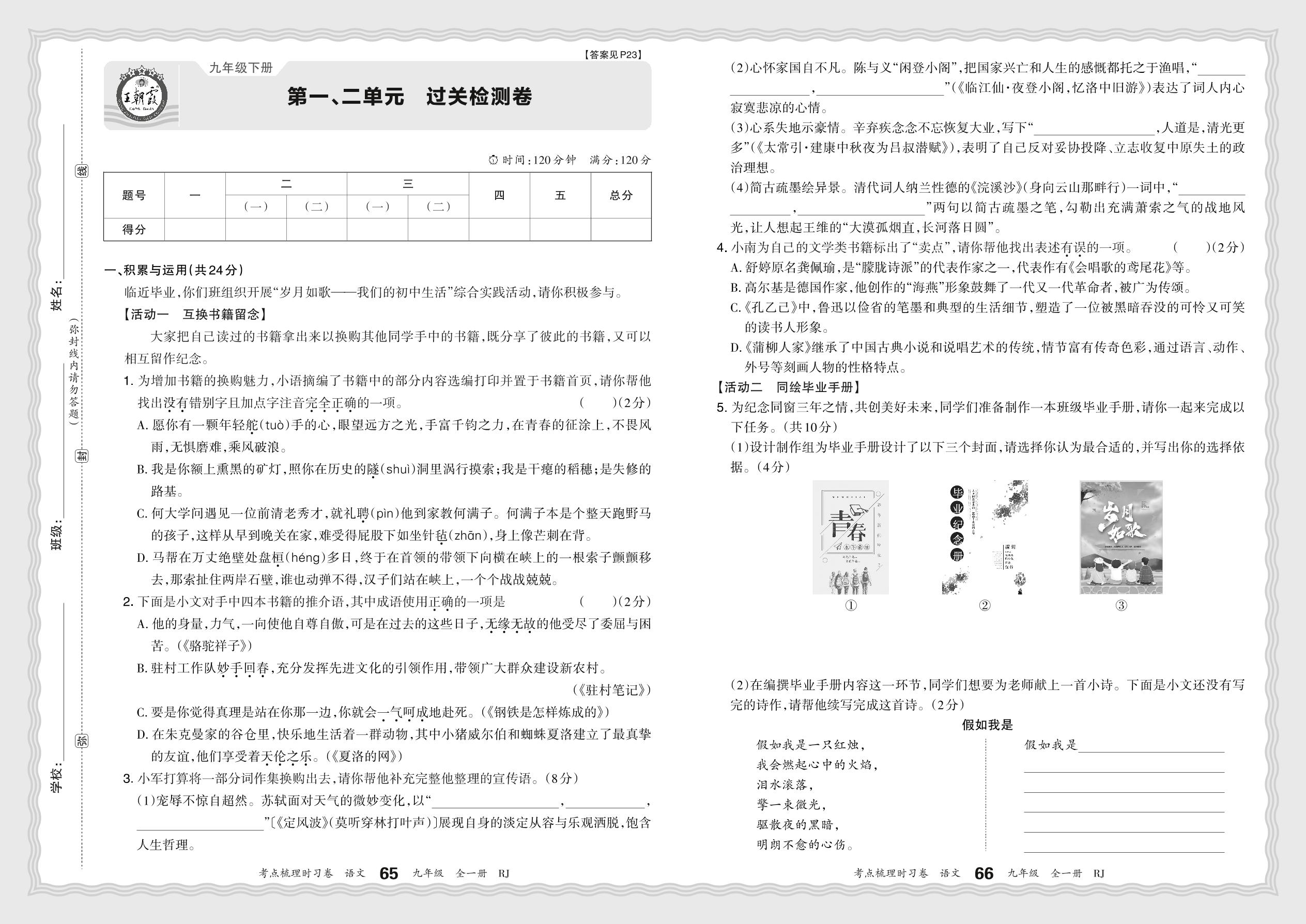 2025下册九年级语文人教版 第一、二单元 过关检测卷