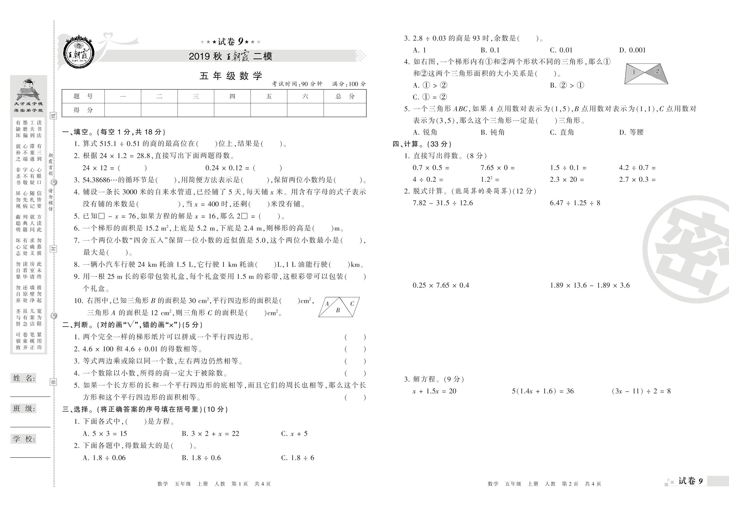 王朝霞期末模拟卷五年级上册数学(人教版)_R210804172405【9】