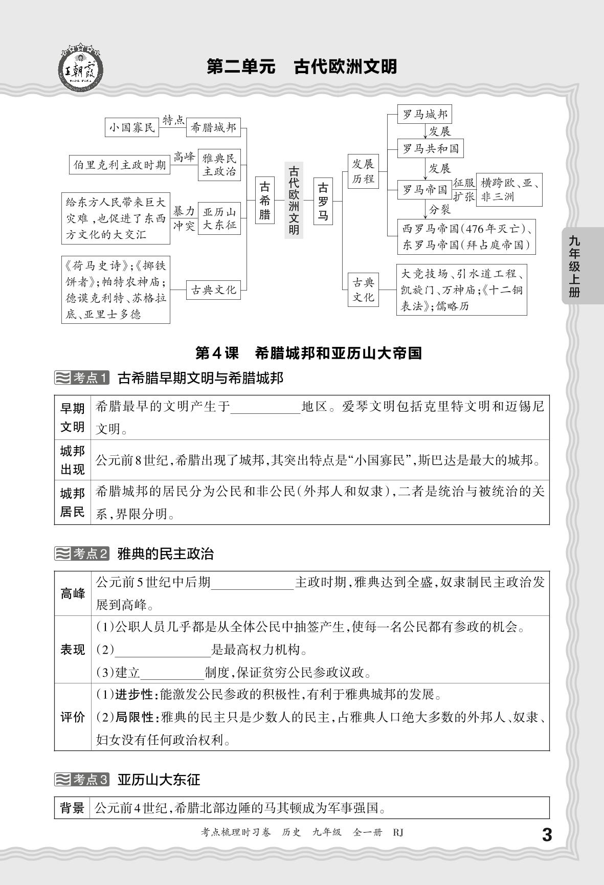 2024上册九年级历史人教版 考点梳理手册——第二单元 古代欧洲文明
