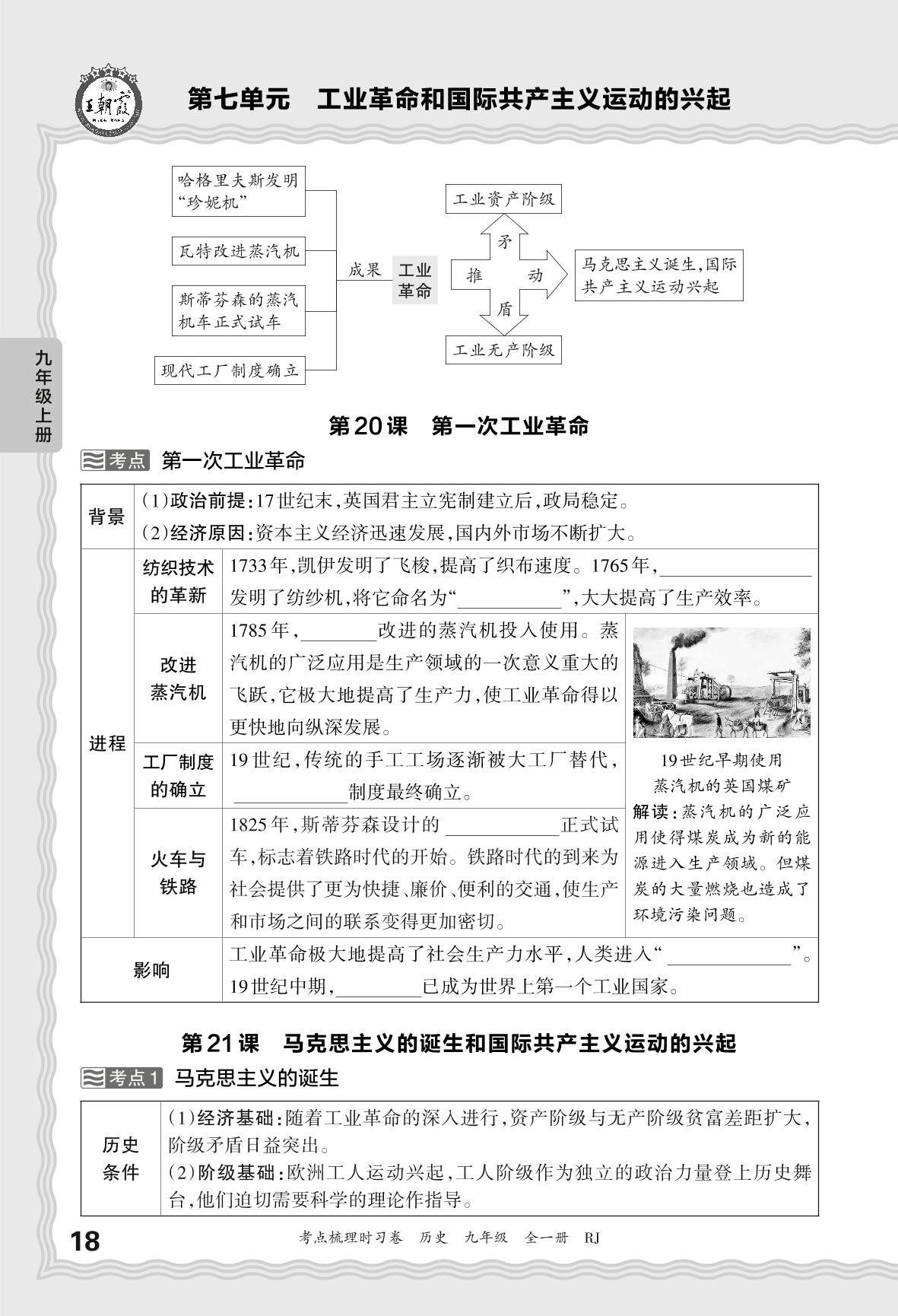 2024上册九年级历史人教版 考点梳理手册——第七单元 工业革命和国际共产主义运动的兴起