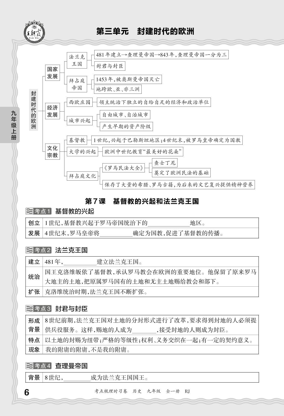 2024上册九年级历史人教版 考点梳理手册——第三单元 封建时代的欧洲