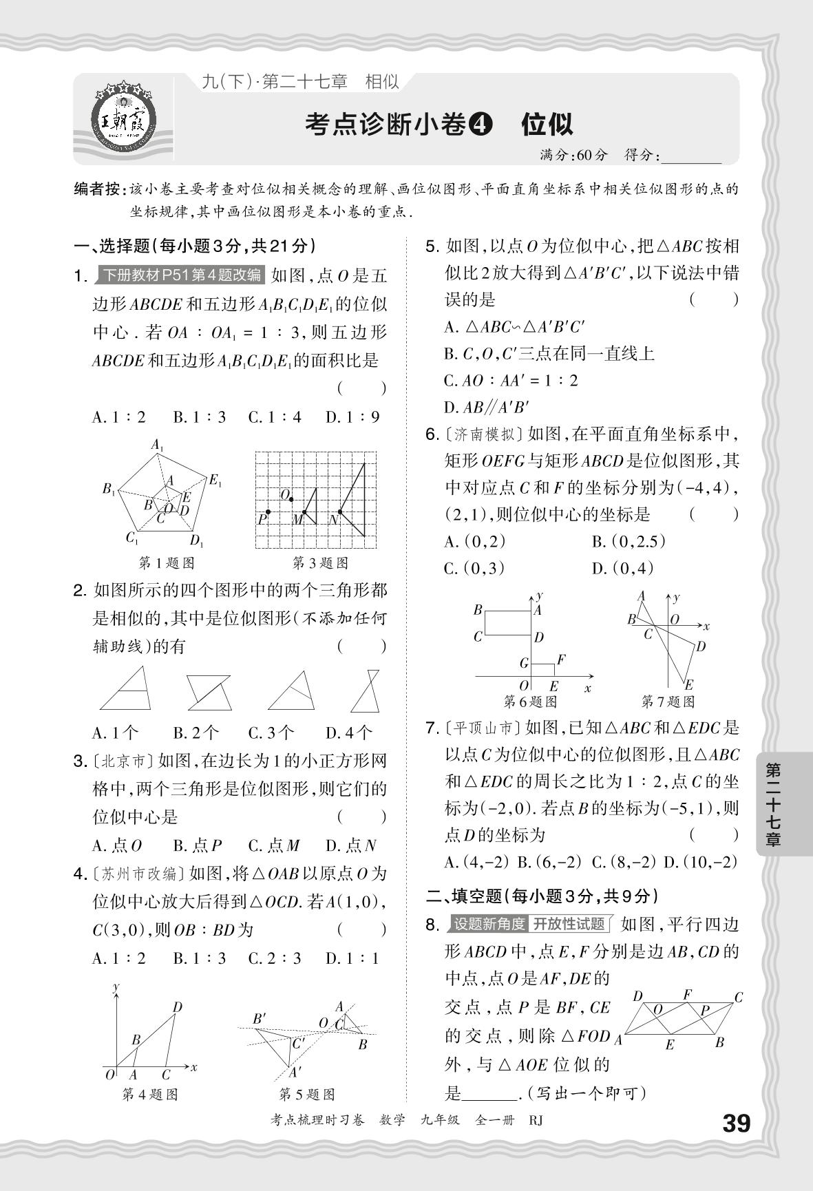 2025下册九年级数学人教版 第二十七章 考点诊断小卷4 位似