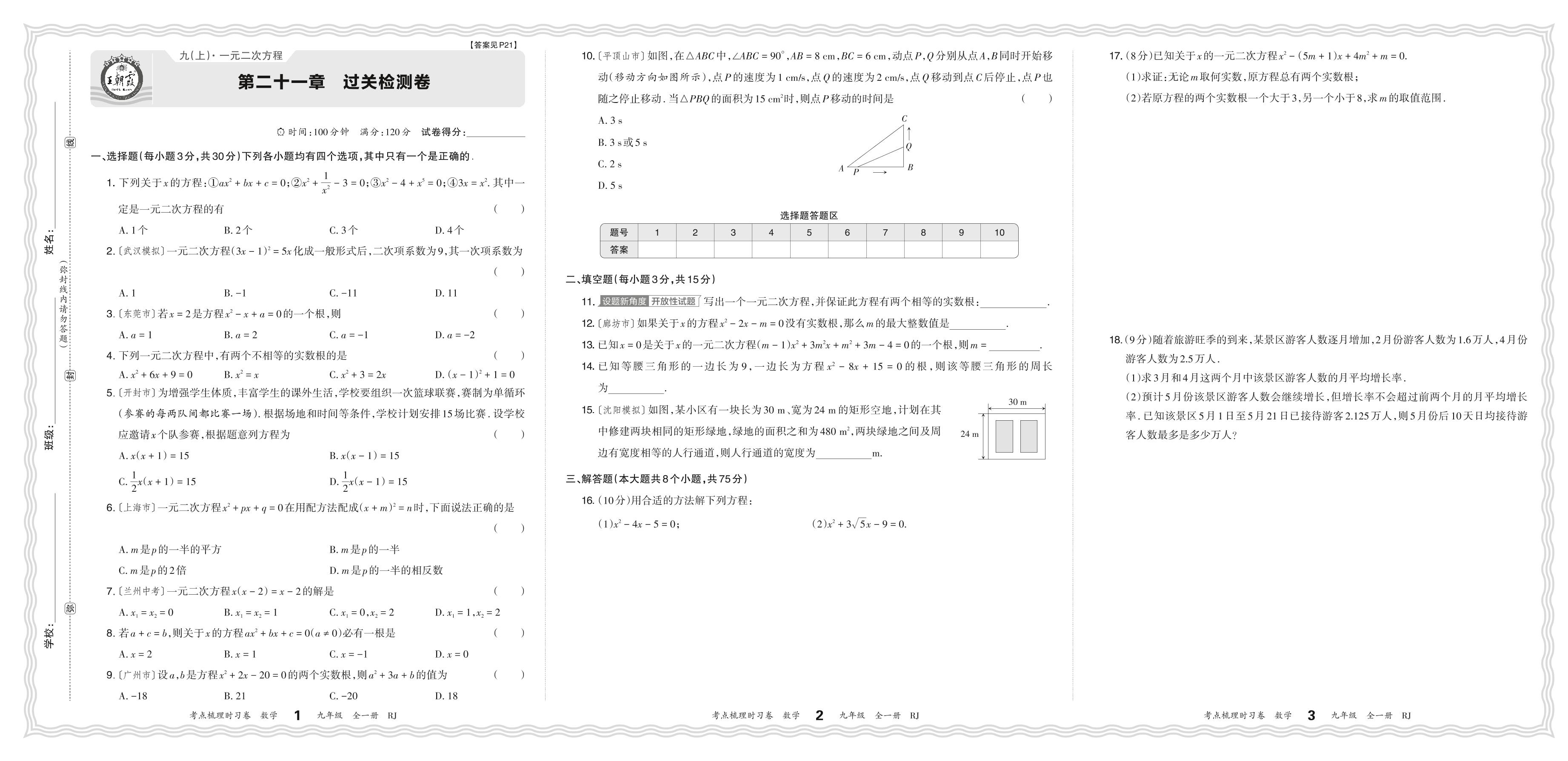 2024上册九年级数学人教版 第二十一章 过关检测卷