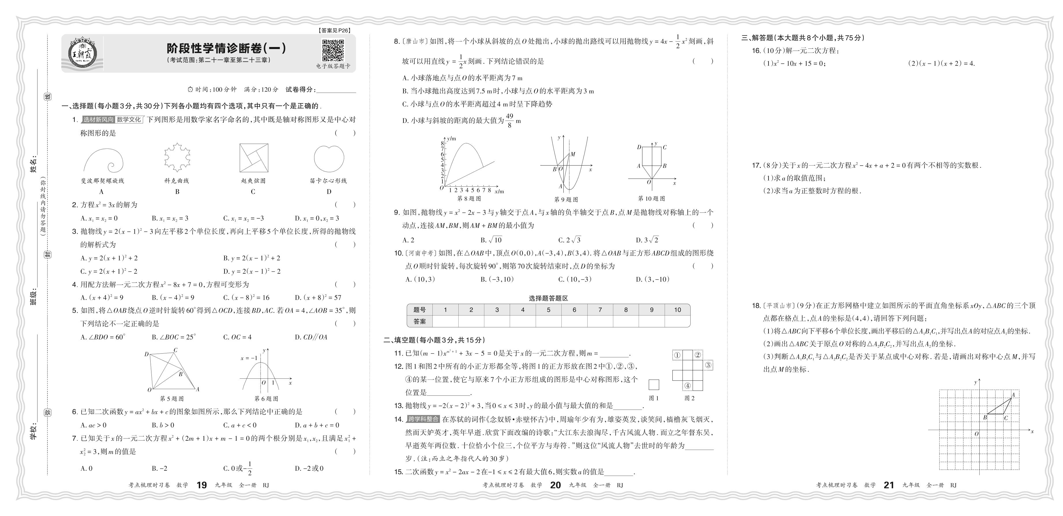 2024上册九年级数学人教版 阶段性学情诊断卷(一)