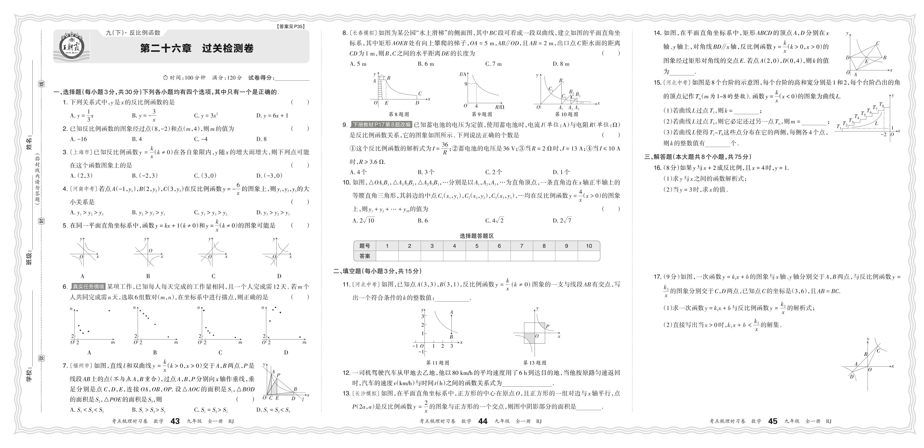 2025下册九年级数学人教版 第二十六章 过关检测卷