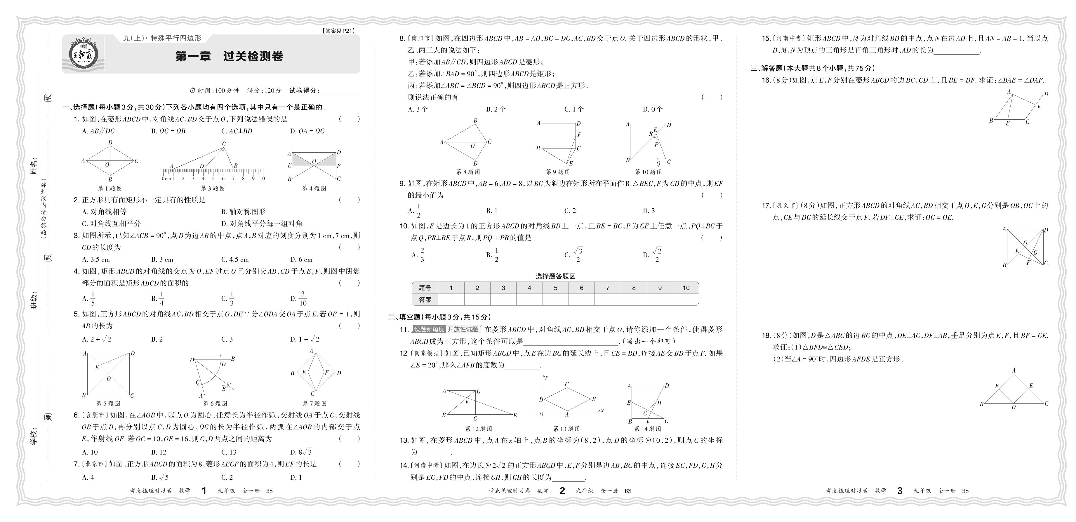 2024上册九年级数学北师版 第一章 过关检测卷