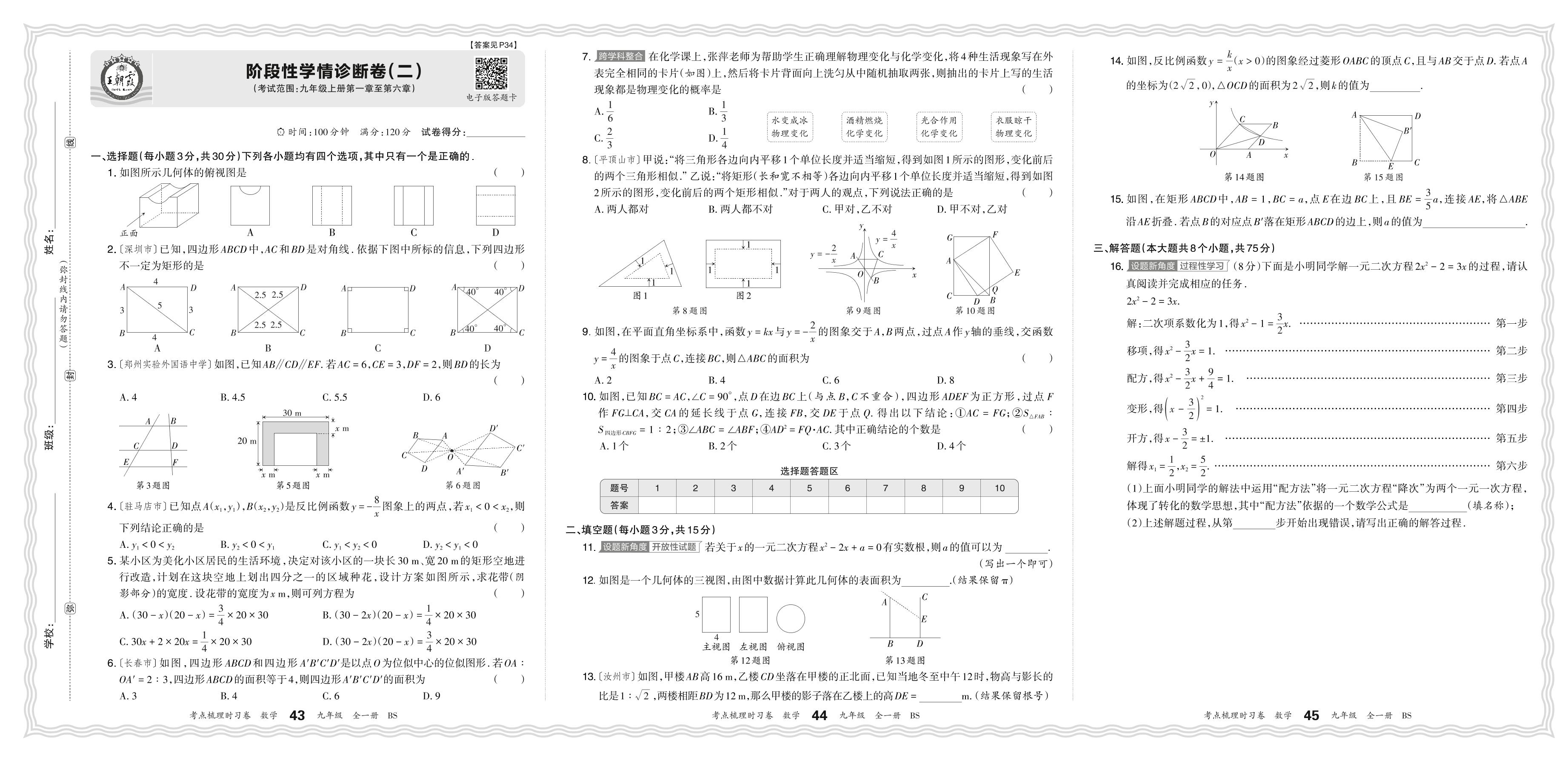 2024上册九年级数学北师版 阶段性学情诊断卷(二)
