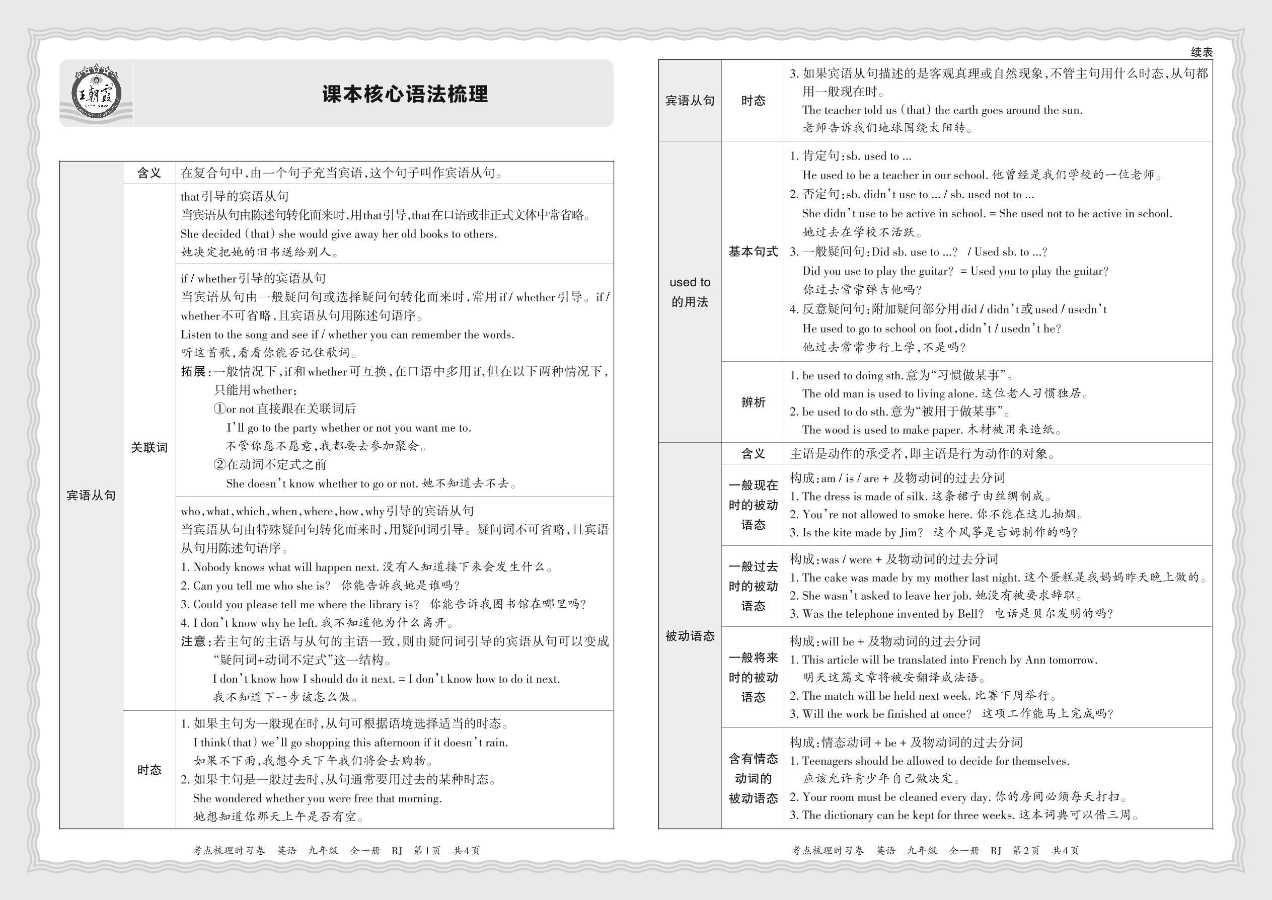 2024-2025学年九年级英语人教版 课本核心语法梳理