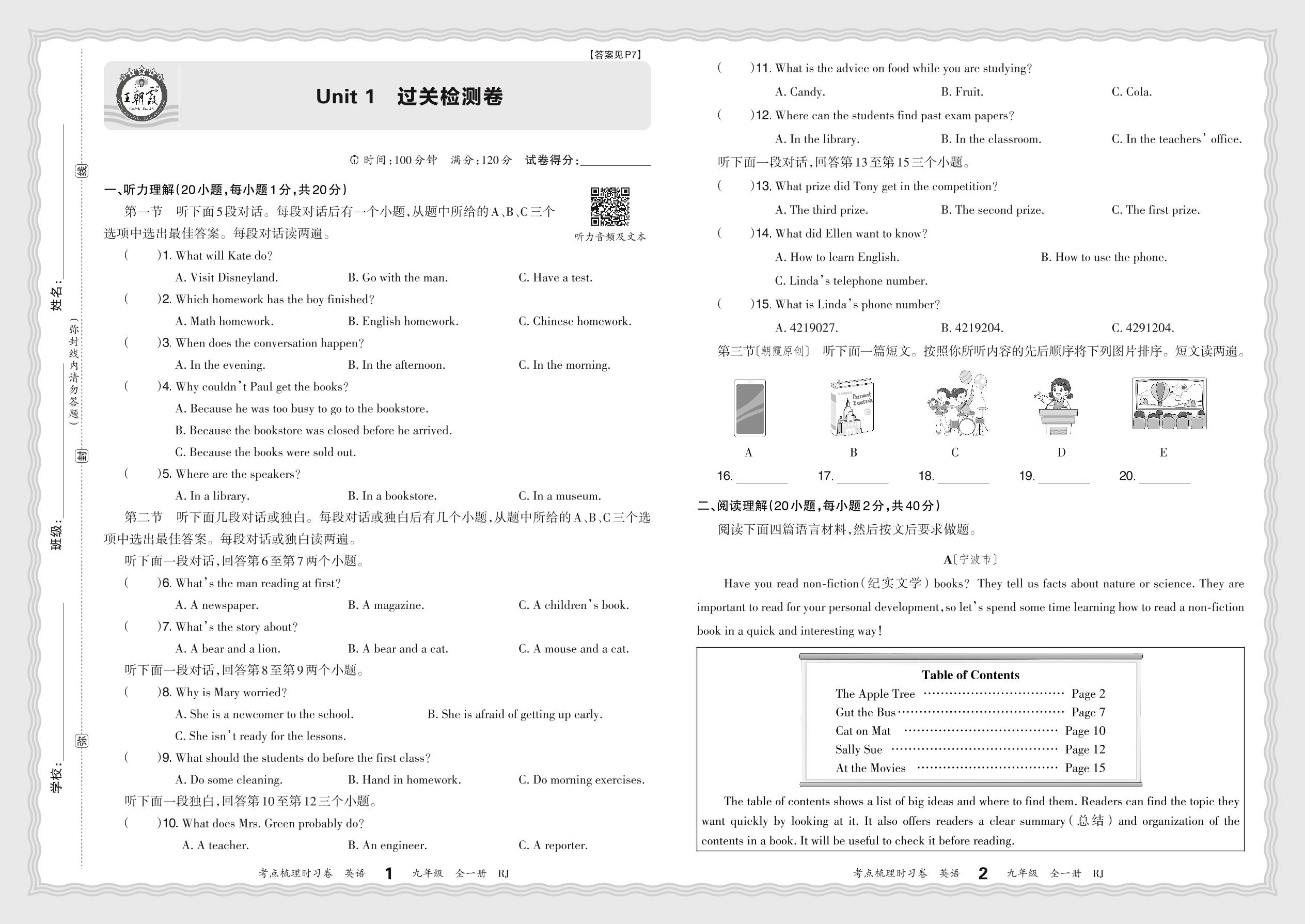 2024-2025学年九年级英语人教版 Unit 1 过关检测卷