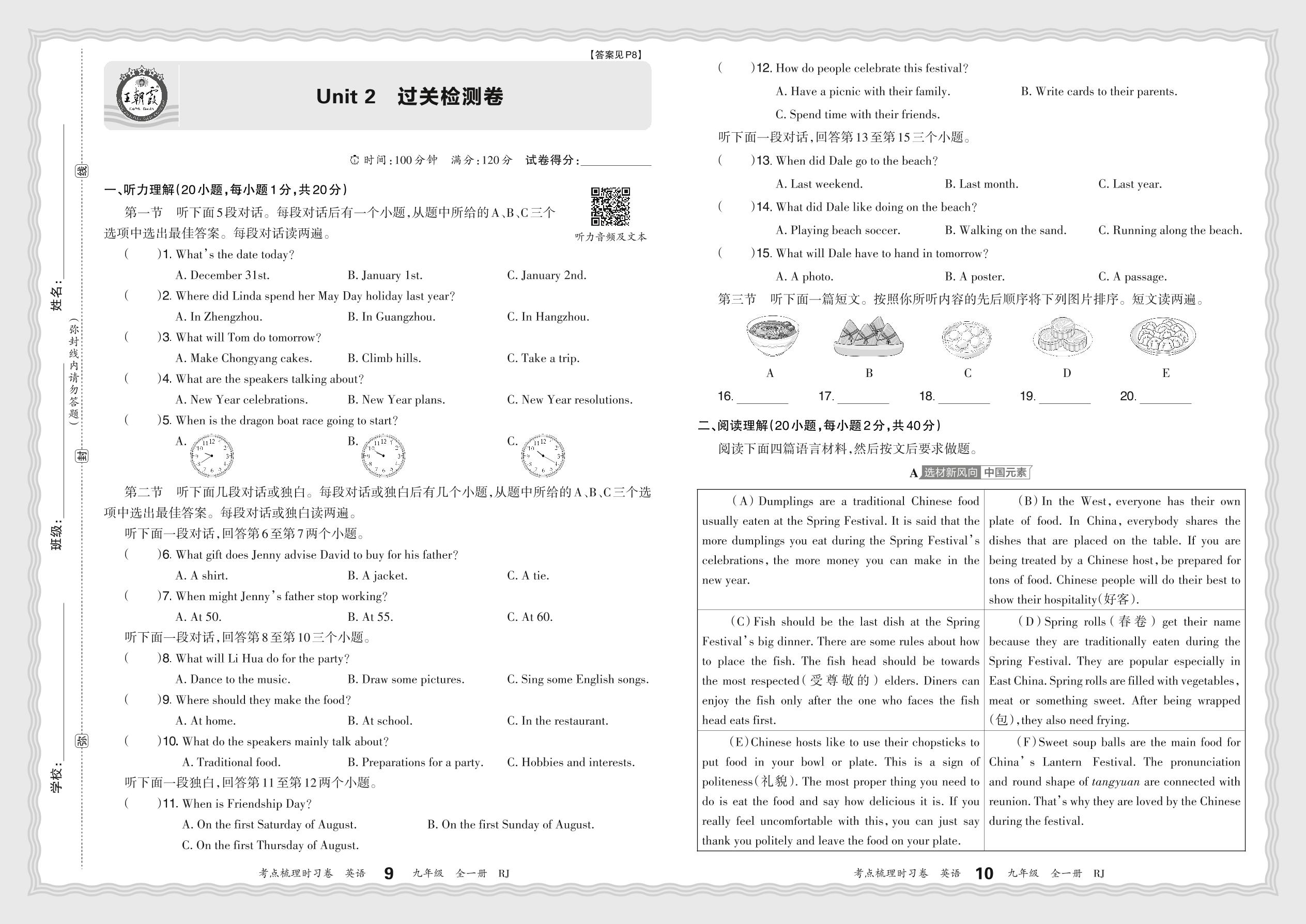 2024-2025学年九年级英语人教版 Unit 2 过关检测卷