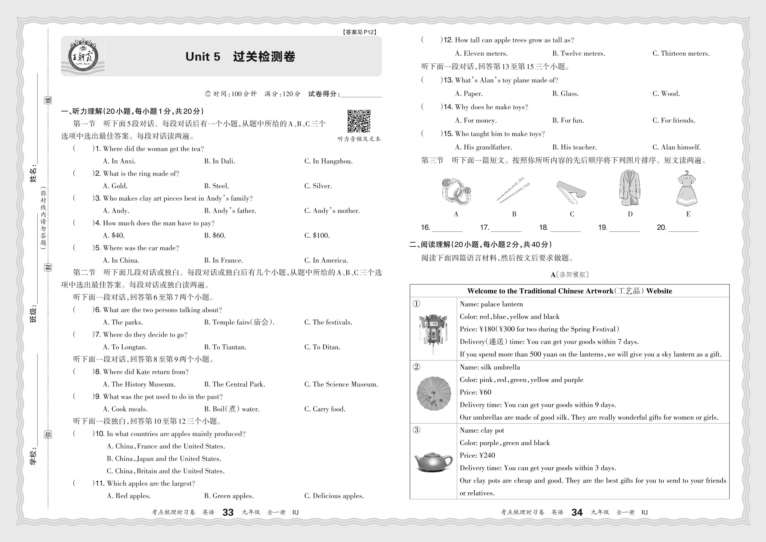 2024-2025学年九年级英语人教版 Unit 5 过关检测卷