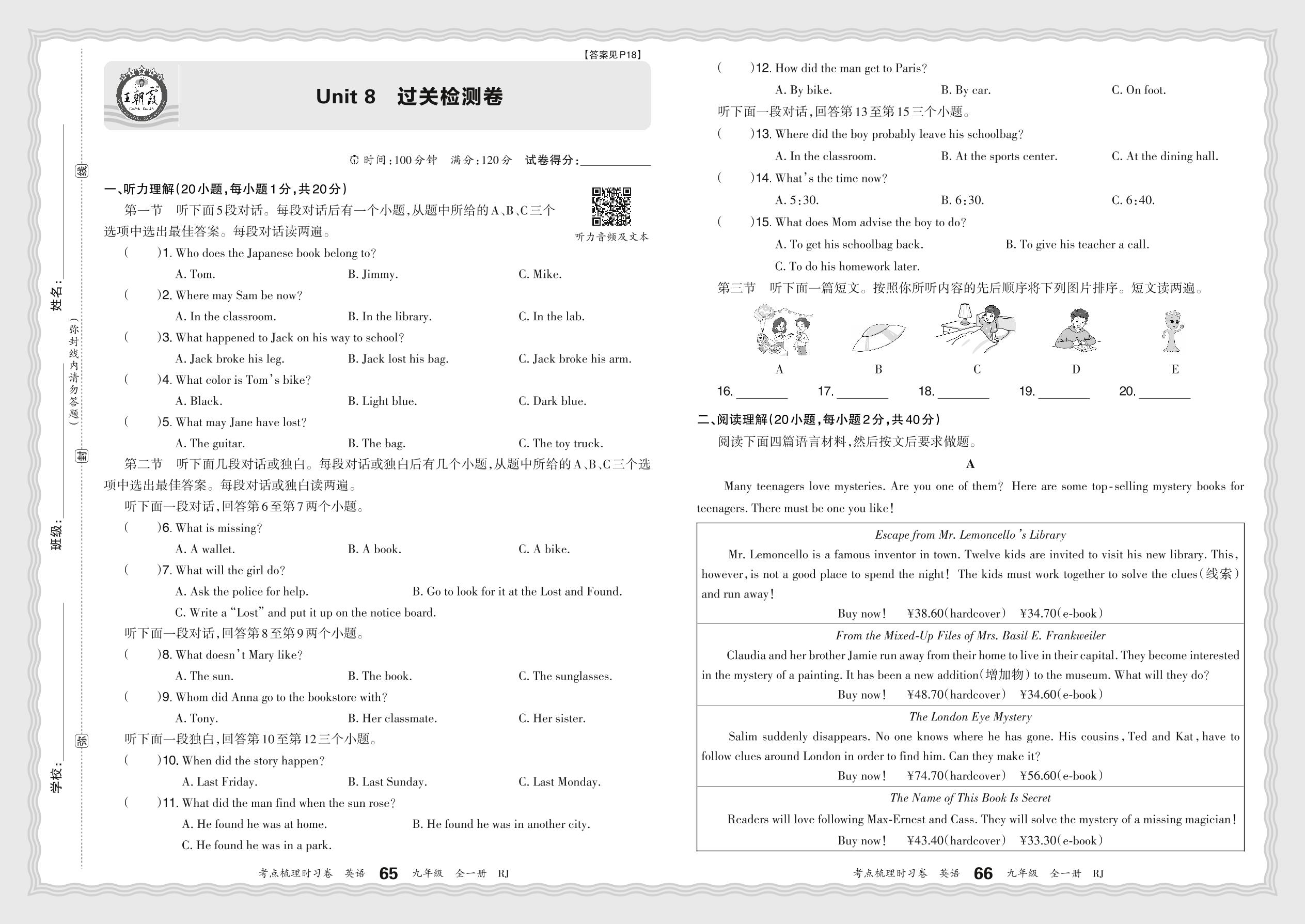2024-2025学年九年级英语人教版 Unit 8 过关检测卷